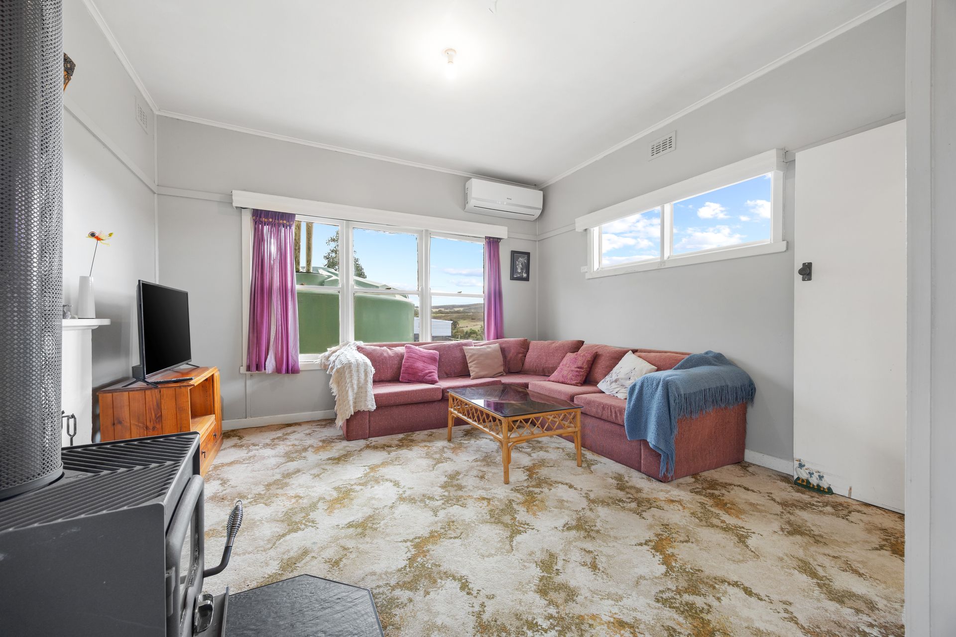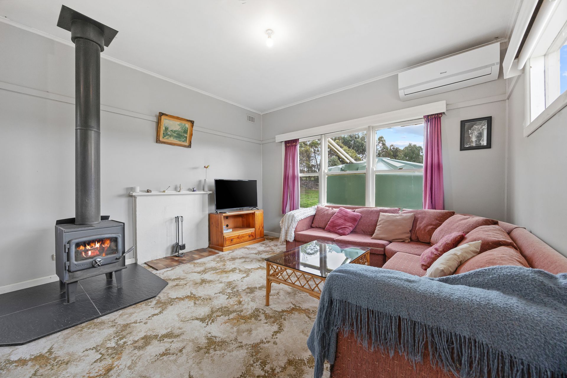 Heating and cooling are sorted with a wood fire and a split system air conditioner for added convenience.