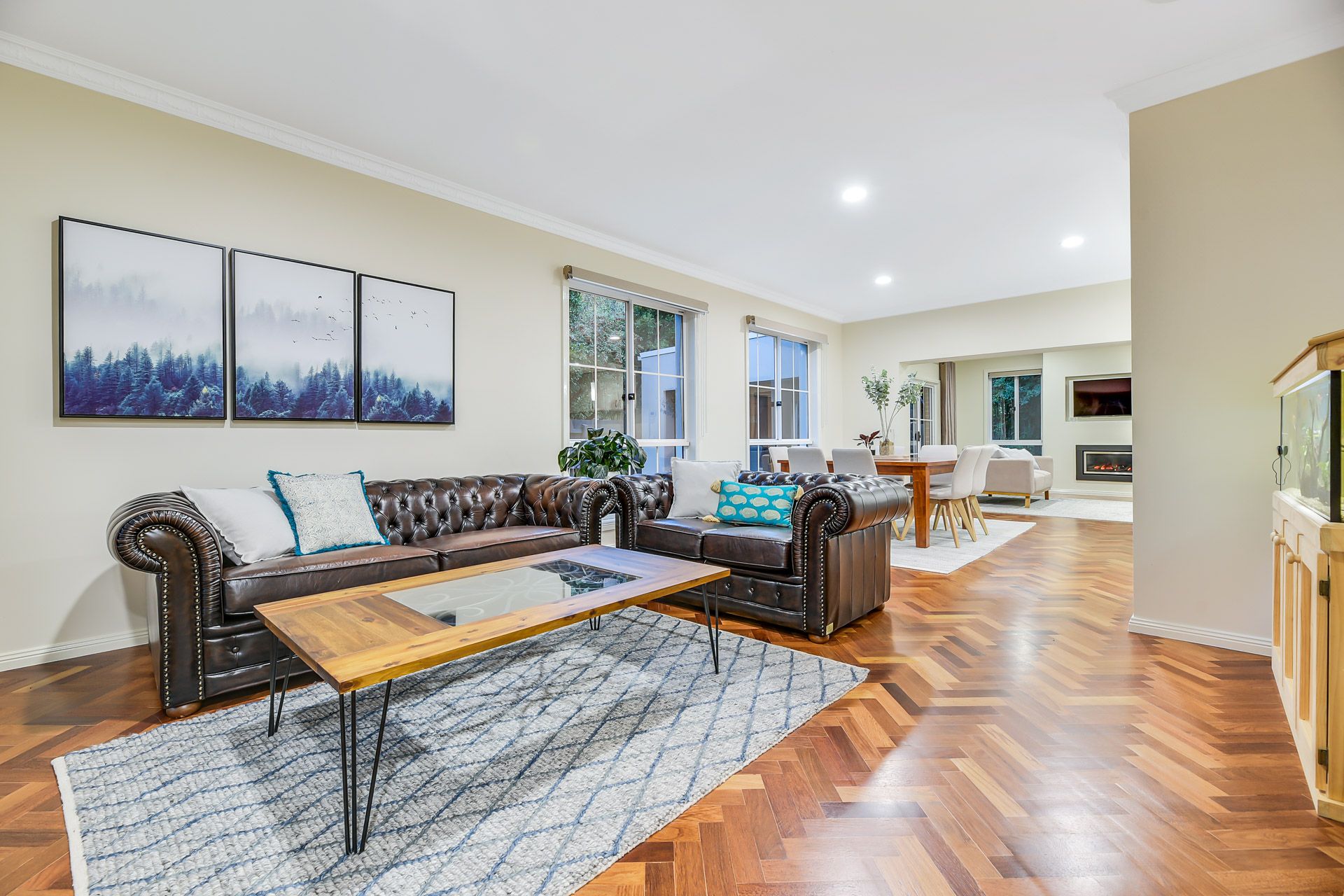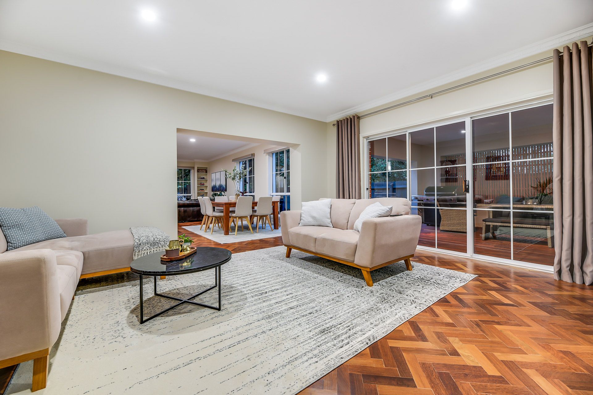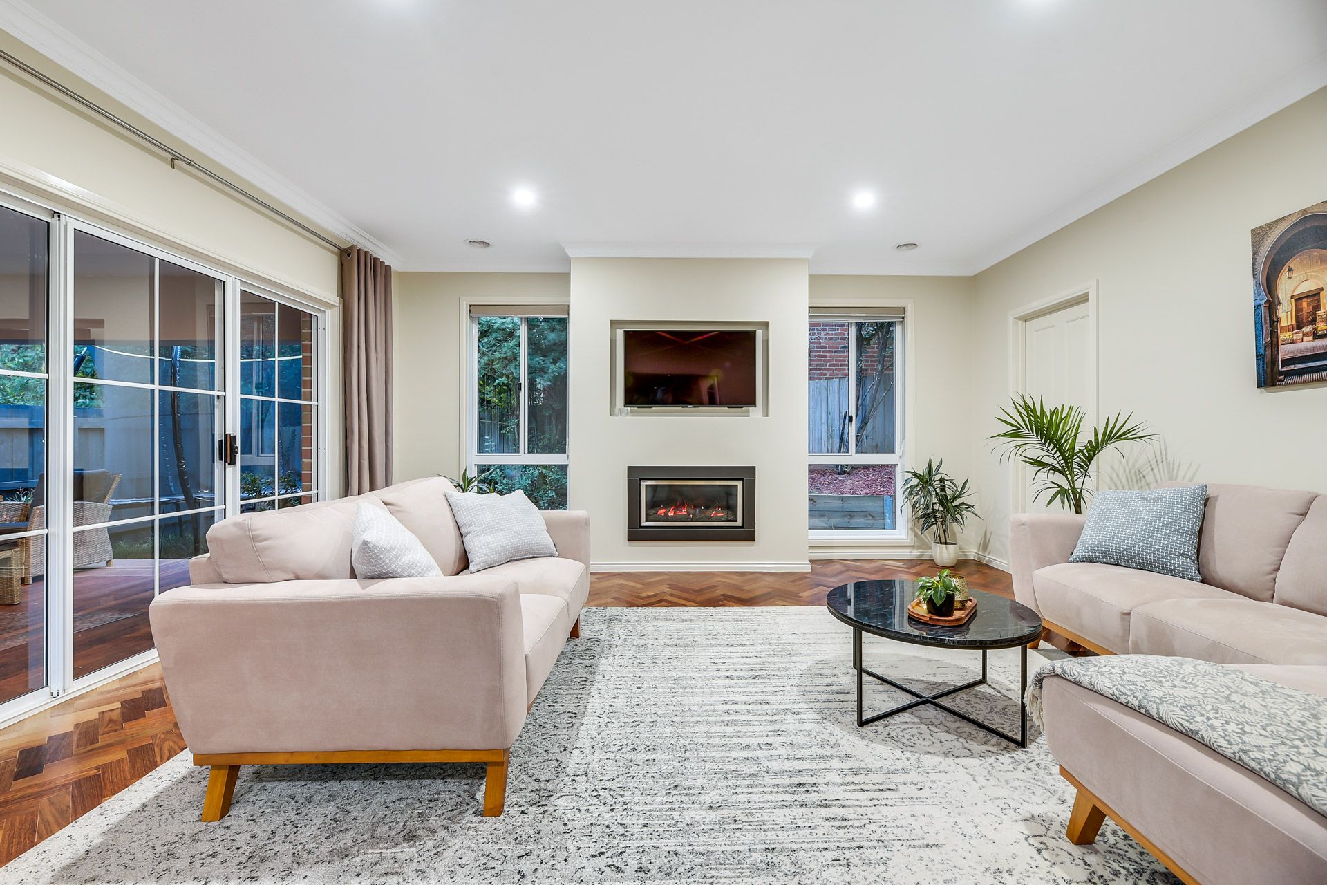 Family-friendly and supremely-comfortable, the living/dining zone is super-spacious, the adjoining rumpus boasts a cosy gas fireplace, and the connecting decked alfresco is ideal for effortless entertaining.
