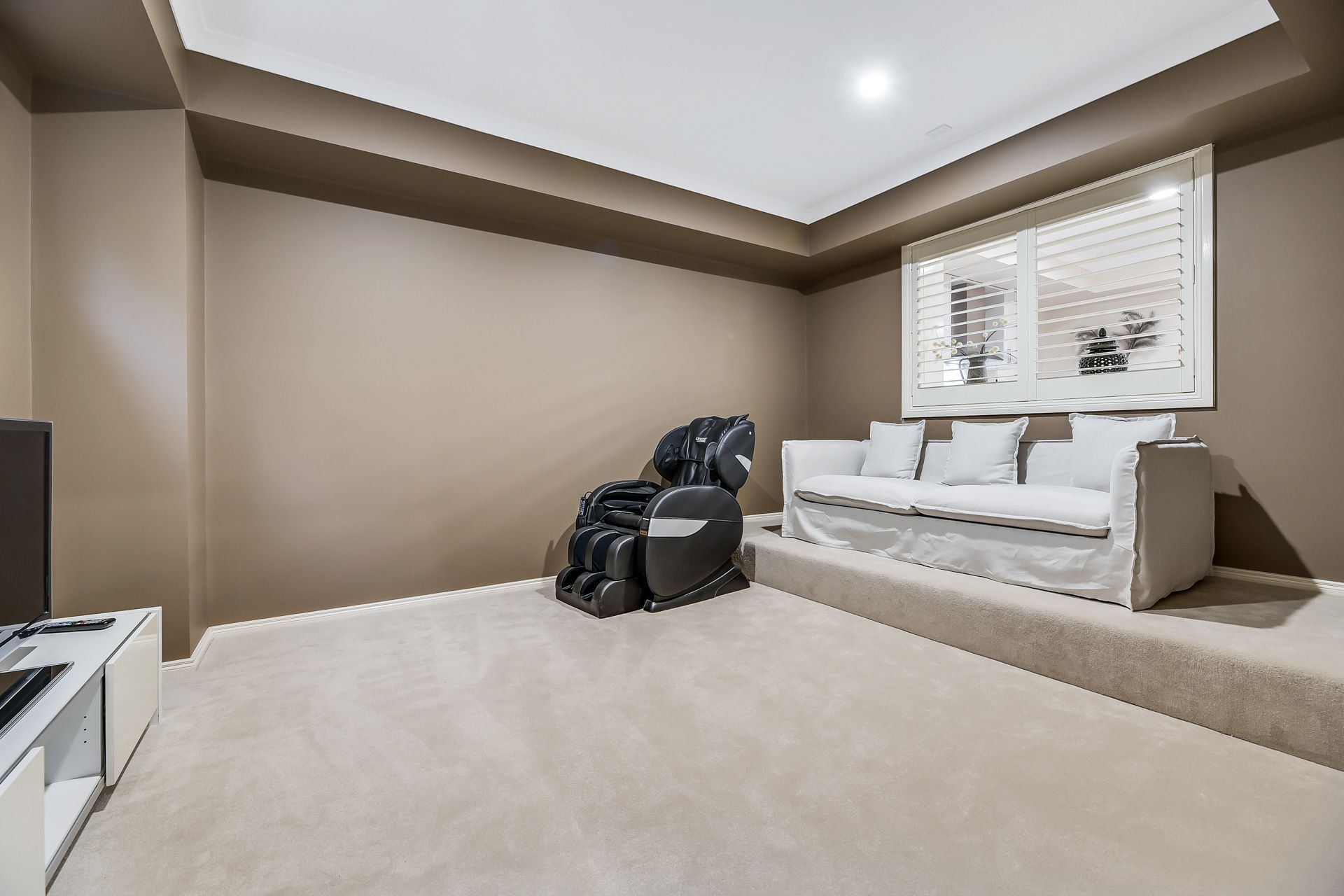 • Plush carpets to theatre/bedrooms/retreat