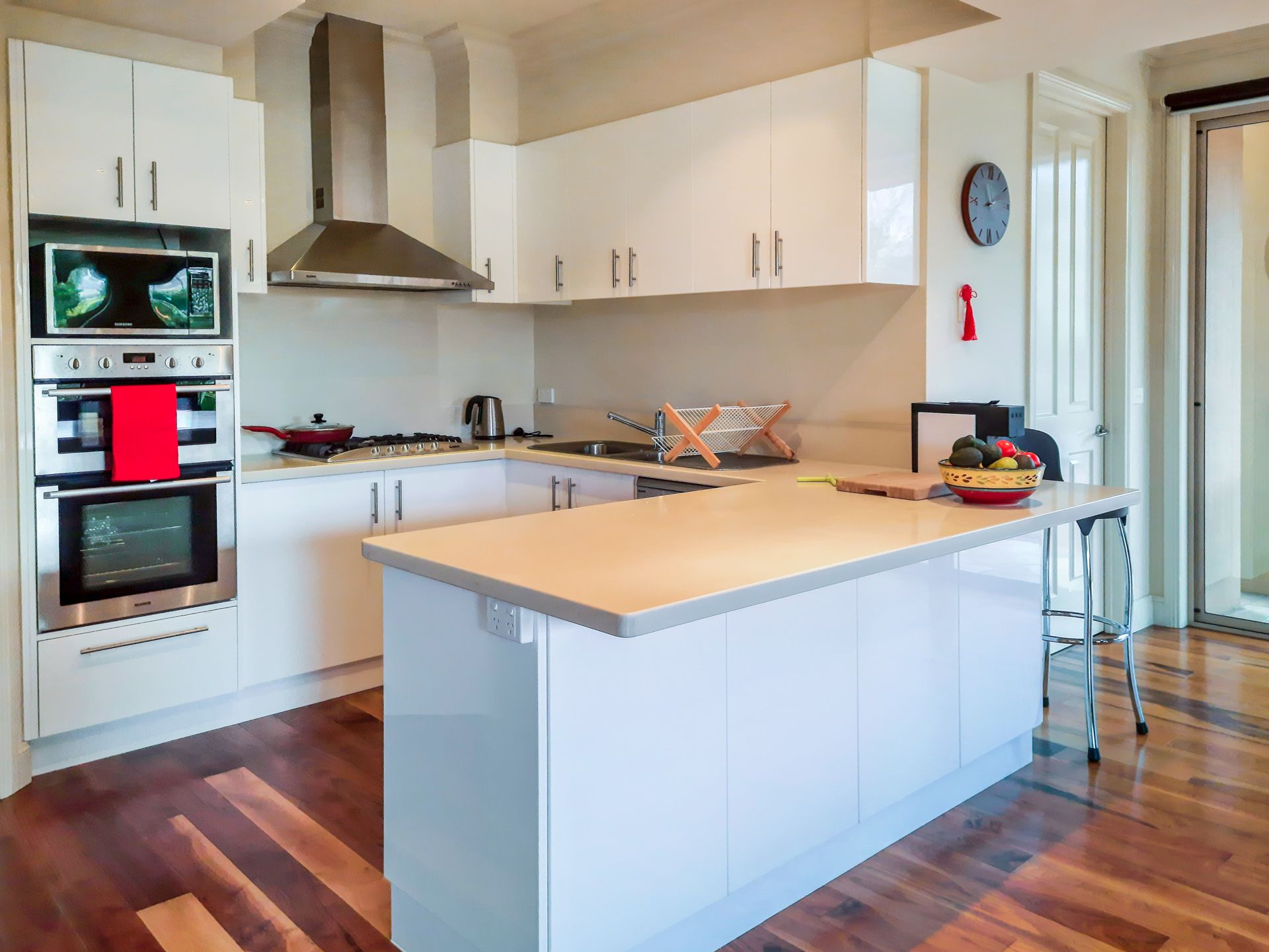 Showcasing four bedrooms, three bathrooms, master with WIR, ensuite and balcony, a quality chef's kitchen features gourmet appliances, two ovens, microwave, dishwasher, large pantry and stone bench tops.