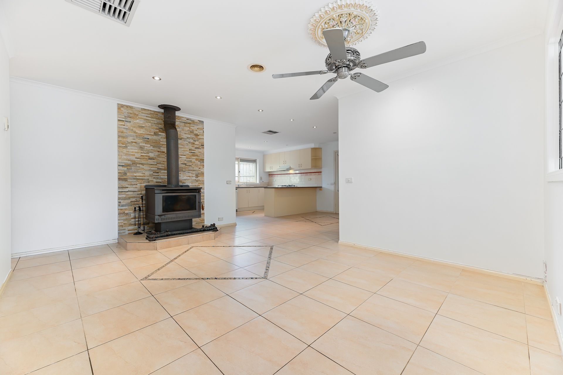 The internal layout is spacious with the entire Eastern side of the home dedicated to open plan living and a huge, covered pergola, perfect for entertaining. Stylish touches are found throughout with stained glass feature windows, ornate ceiling fans and decorative cornices and ceiling roses. Comfort is provided via evaporative cooling, ducted heating, and down lights, while a stunning freestanding fireplace is accentuated by a stone stacker feature wall. The home has been freshly painted.