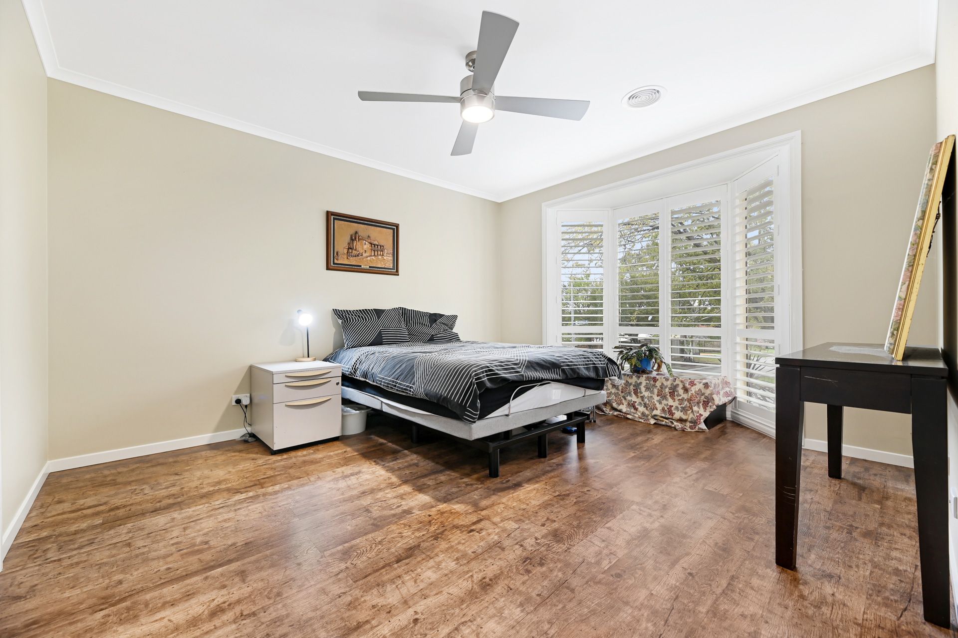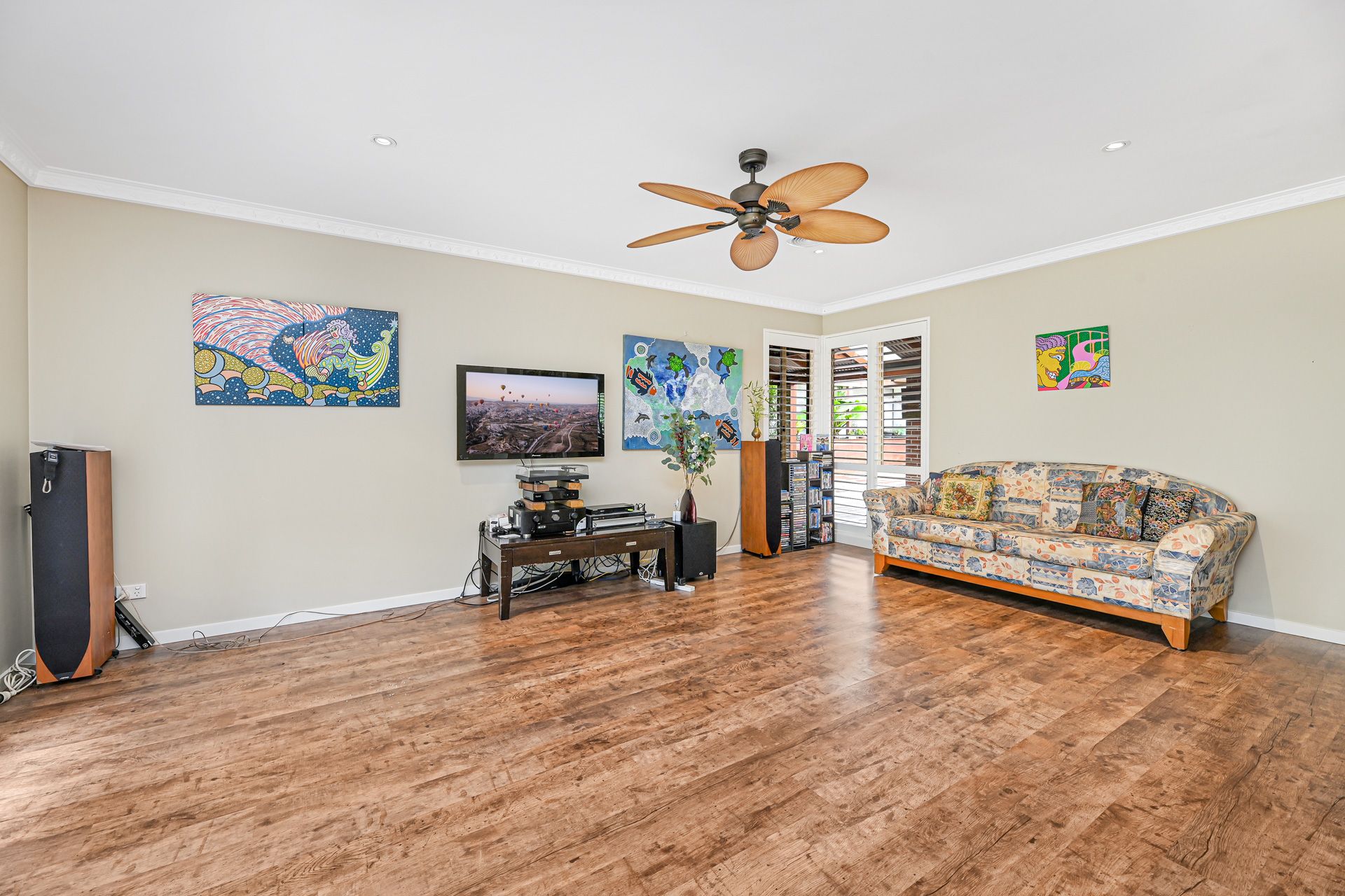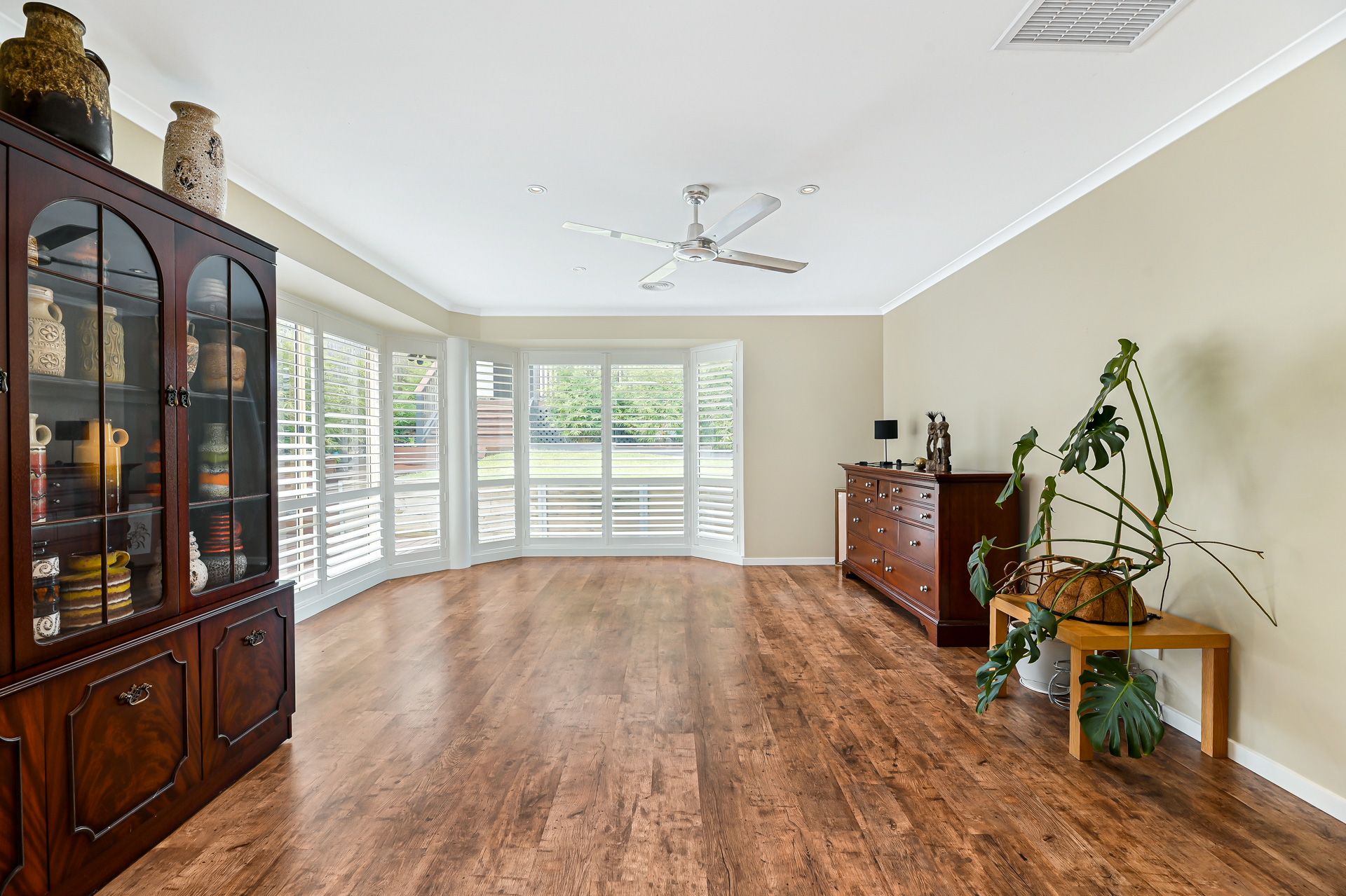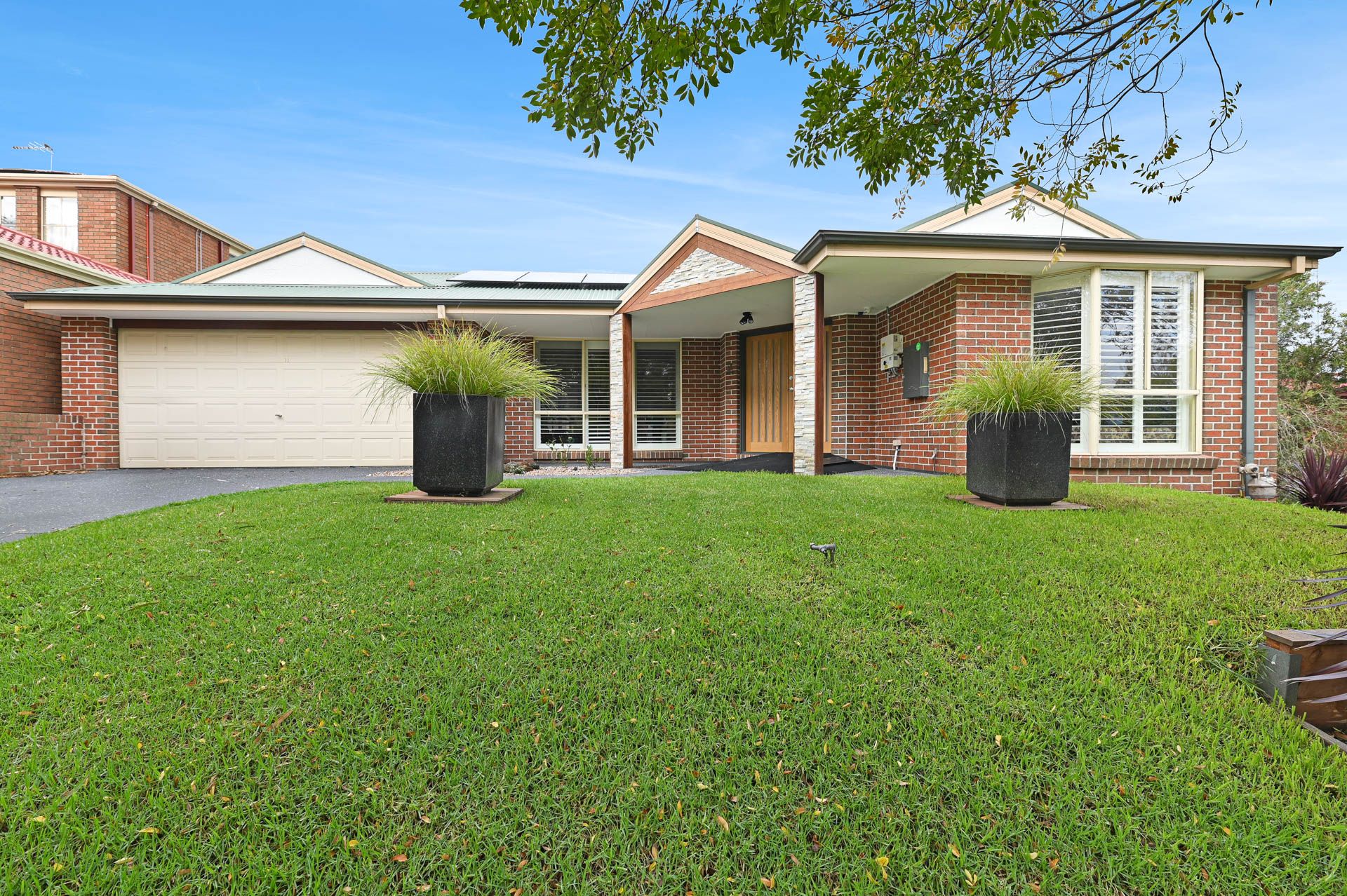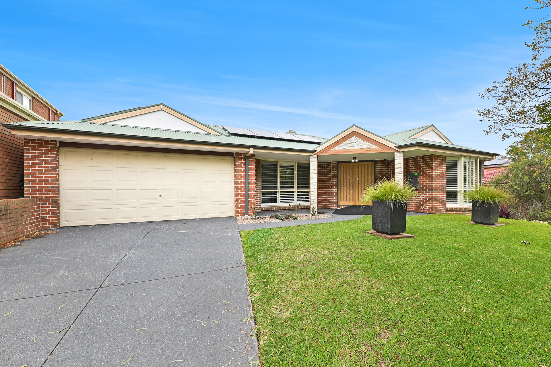 The list of added extras is substantial and includes a dedicated laundry with stone benchtops and buckets of built-in storage space, rooftop solar panels, ducted reverse-cycle air conditioning and heating throughout, ceiling fans, LED downlighting, stylish plantation shutters, both sheer and block-out blinds and a double garage for off-street parking just to name a few.