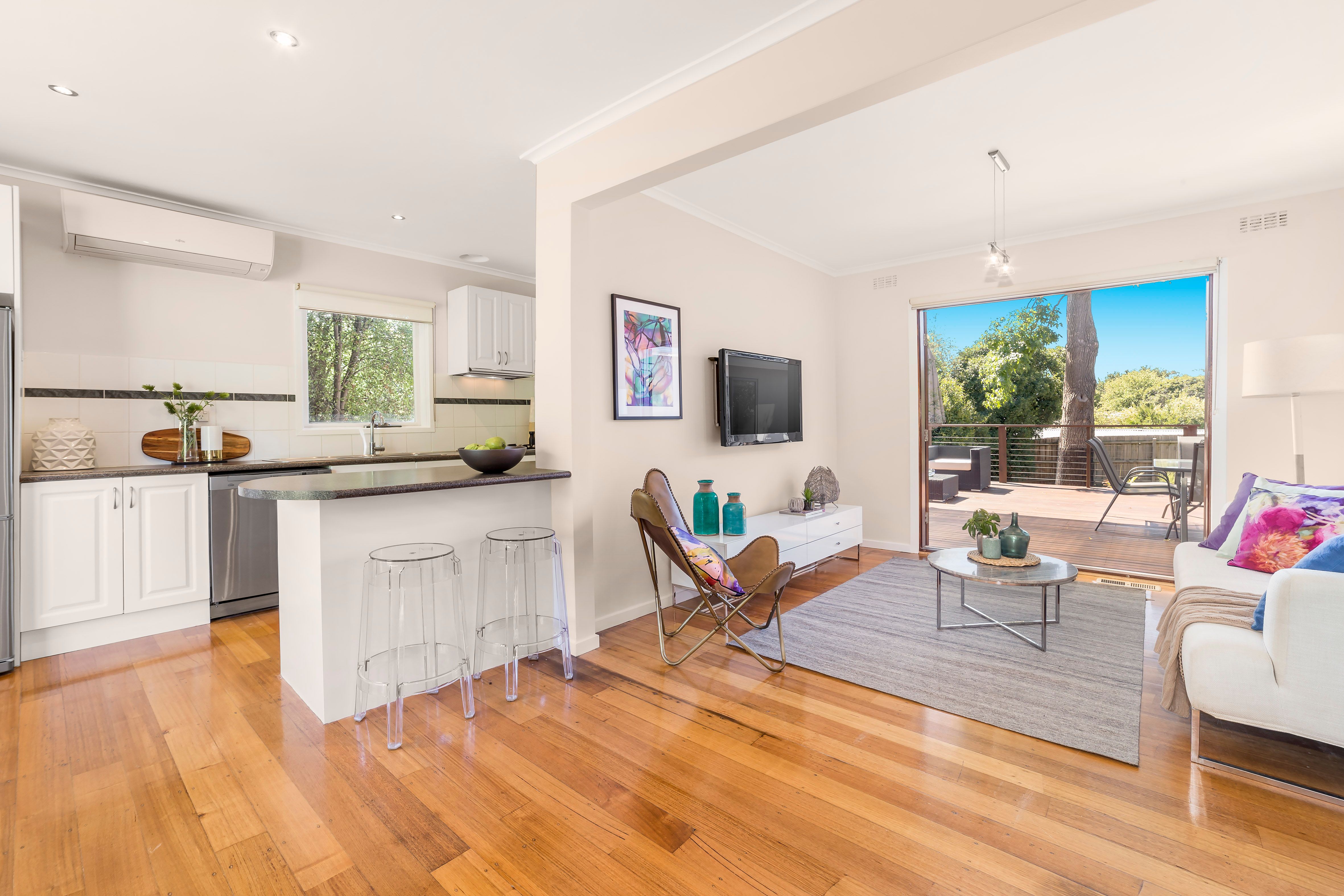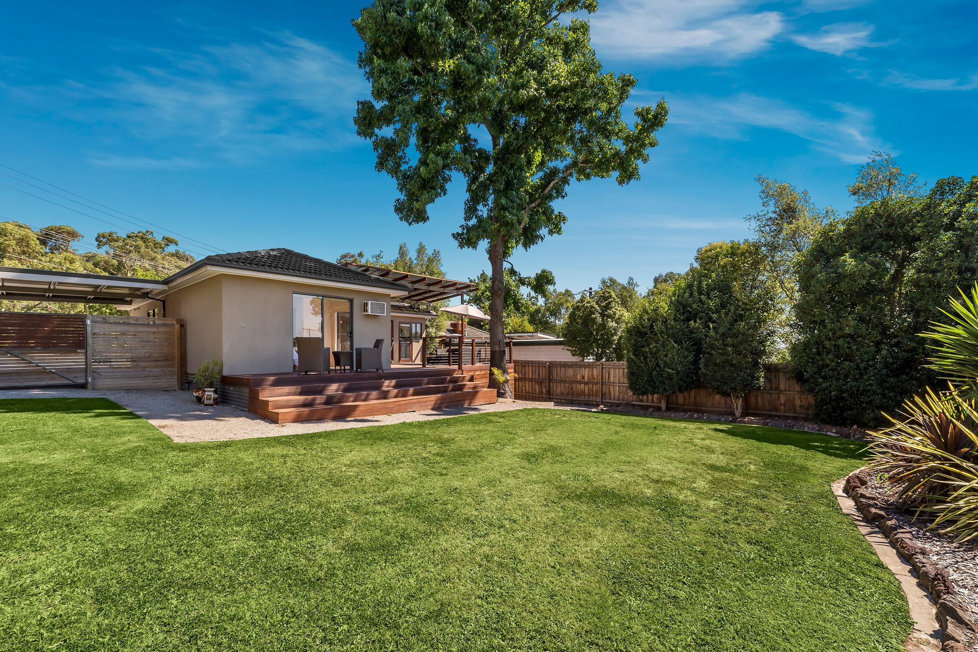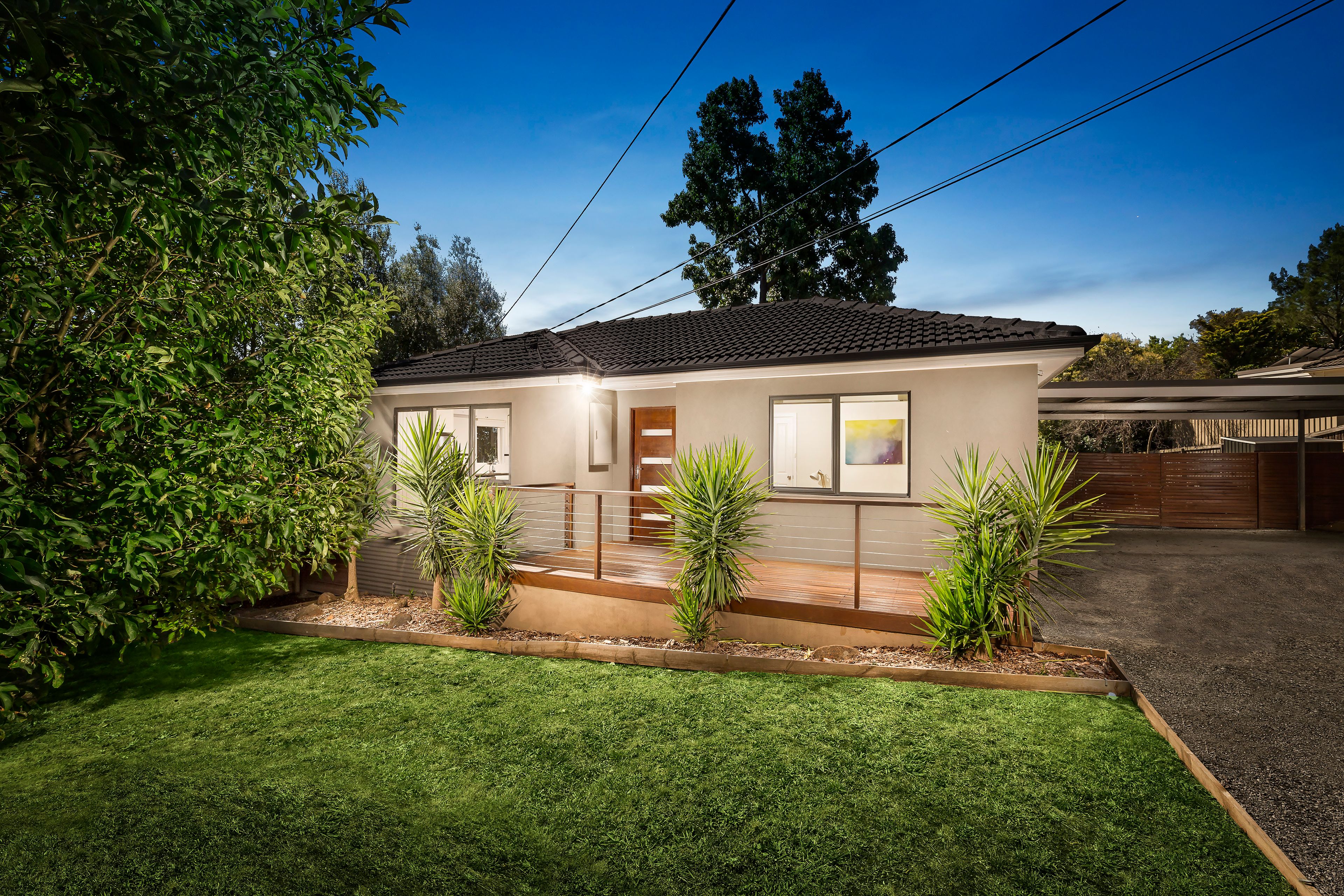 Renovated with contemporary flair inside and out, this stylish single level entertainer looks and feels like a brand new home. With both the living room and master bedroom opening out to the stunning al fresco deck, you'll be able to lap up the bed and breakfast lifestyle from this smartly updated home on almost 750 sqms (approx.). The living room and meals area impress with polished hardwood floors, beautiful natural light, and easy flow across to the galley kitchen and its s/s appliances and a bright laundry with a glass door to the deck. Two sophisticated bathrooms are styled in large format white tiling, with rainfall showers, and wall hung vanities adding to the designer mood. Bedrooms are placed privately along the hallway, with a spacious and light-filled master retreat set up with a fitted walk in robe and ensuite, and grand windows overlooking the Merbau deck just the spot for a sunny breakfast, a relaxing wine after work or a buzzing weekend BBQ. Including gas ducted heating, a Fujitsu air conditioner, 4-car gravel carport, and secure fencing to the flat backyard, this is a creative and polished package for a young family, or downsizers looking for a home that lets you enjoy the great outdoors.