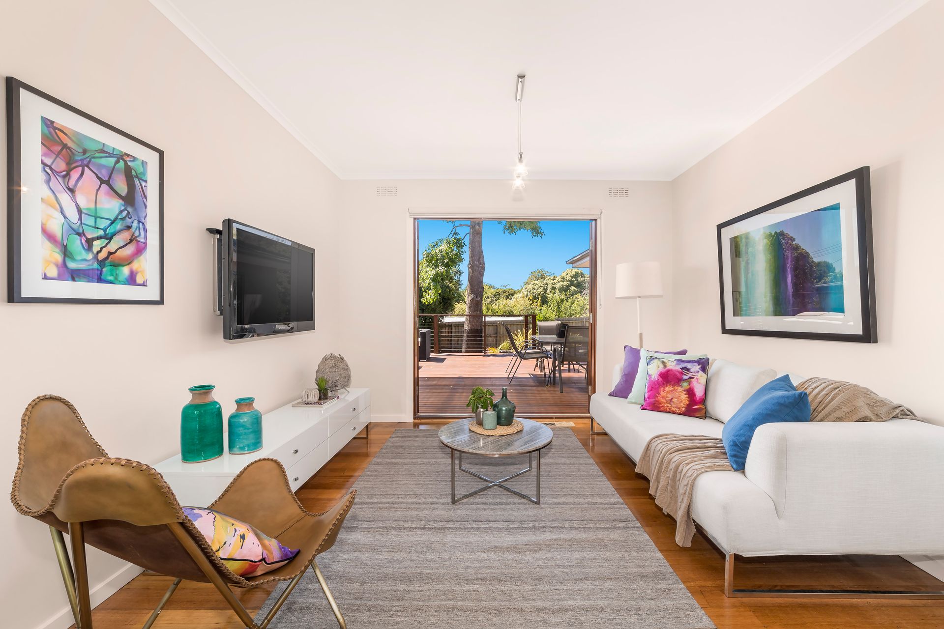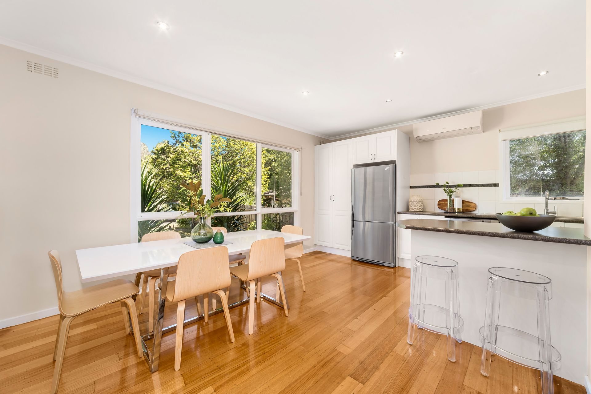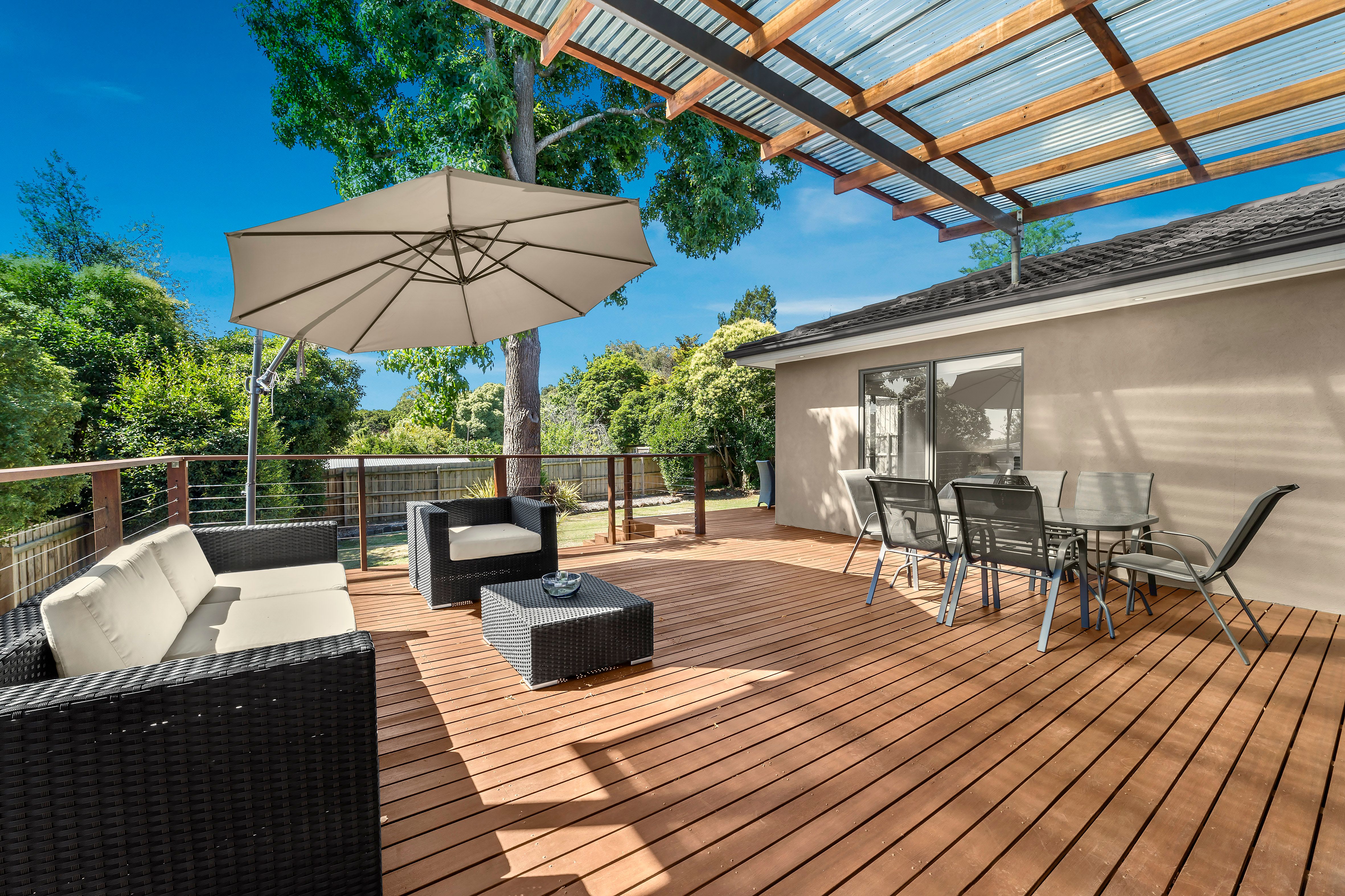 Renovated with contemporary flair inside and out, this stylish single level entertainer looks and feels like a brand new home. With both the living room and master bedroom opening out to the stunning al fresco deck, you'll be able to lap up the bed and breakfast lifestyle from this smartly updated home on almost 750 sqms (approx.). The living room and meals area impress with polished hardwood floors, beautiful natural light, and easy flow across to the galley kitchen and its s/s appliances and a bright laundry with a glass door to the deck. Two sophisticated bathrooms are styled in large format white tiling, with rainfall showers, and wall hung vanities adding to the designer mood. Bedrooms are placed privately along the hallway, with a spacious and light-filled master retreat set up with a fitted walk in robe and ensuite, and grand windows overlooking the Merbau deck just the spot for a sunny breakfast, a relaxing wine after work or a buzzing weekend BBQ. Including gas ducted heating, a Fujitsu air conditioner, 4-car gravel carport, and secure fencing to the flat backyard, this is a creative and polished package for a young family, or downsizers looking for a home that lets you enjoy the great outdoors.