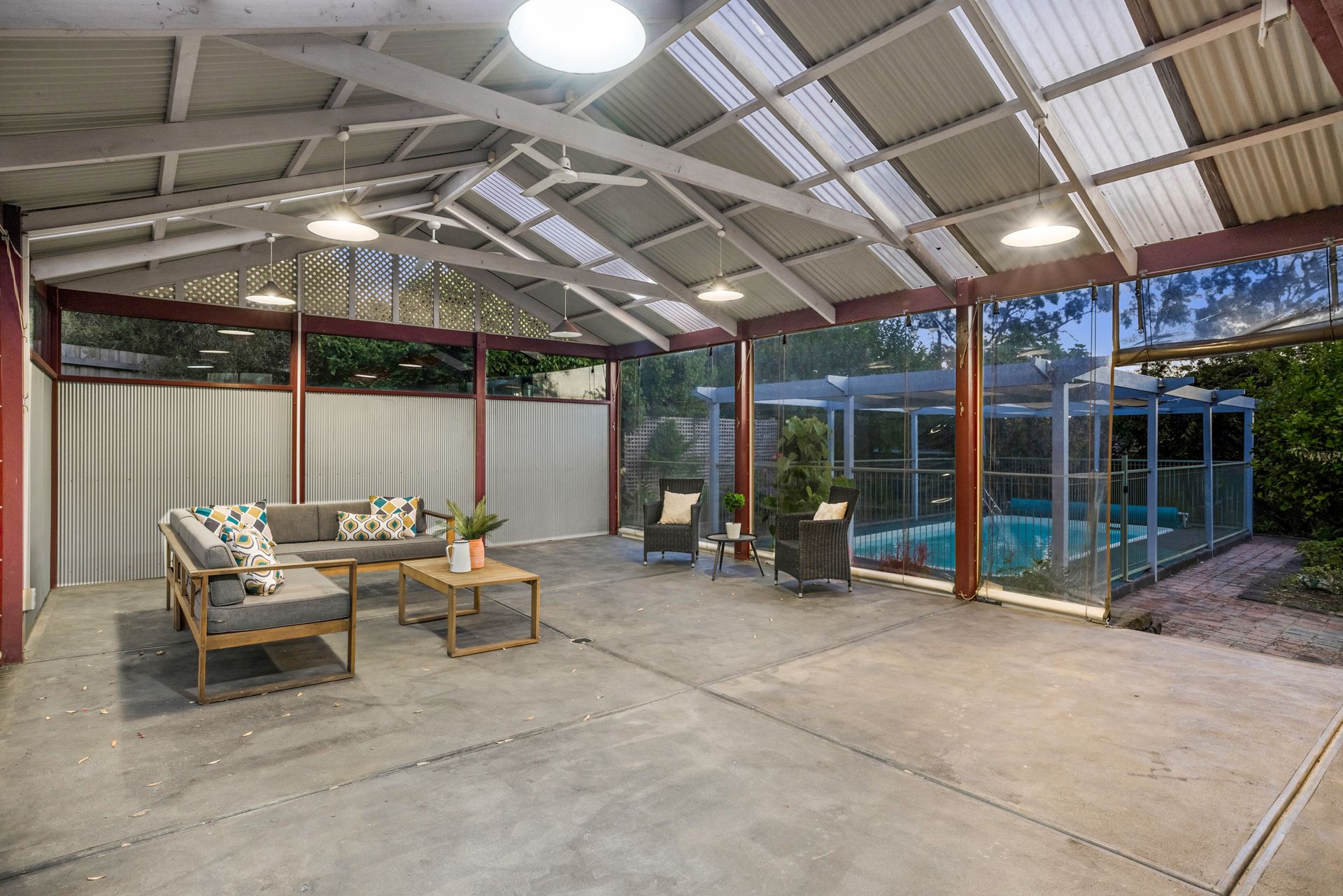 - Huge alfresco space with café blinds, pool, large yard space with veggie gardens and orchard.