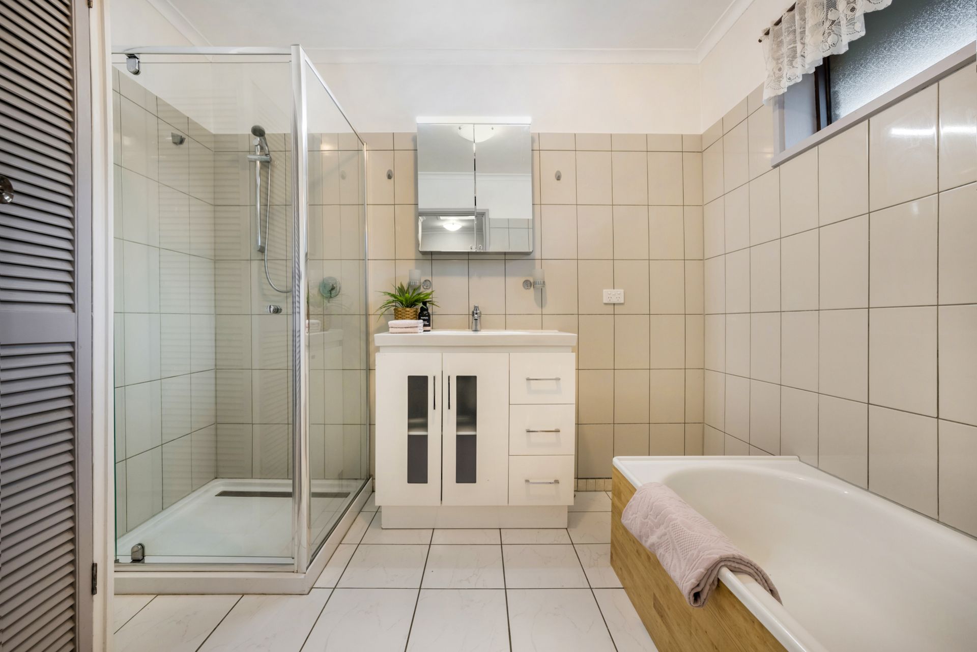 - Tidy bathroom with separate toilet & linen closet