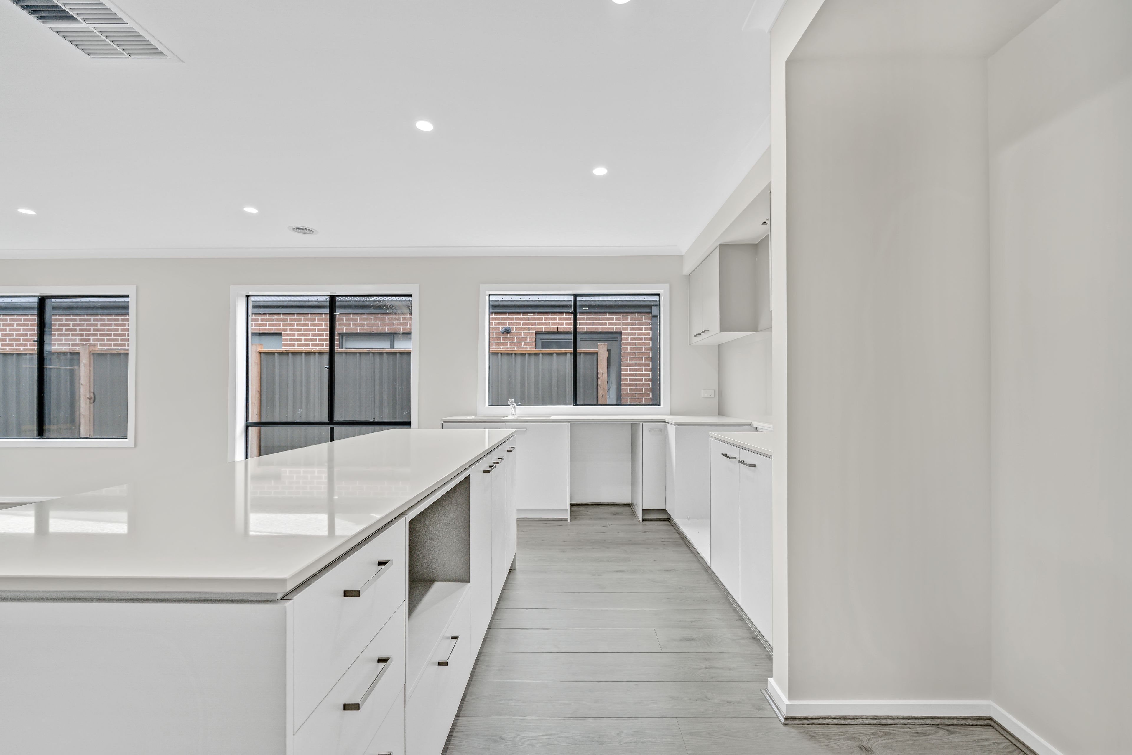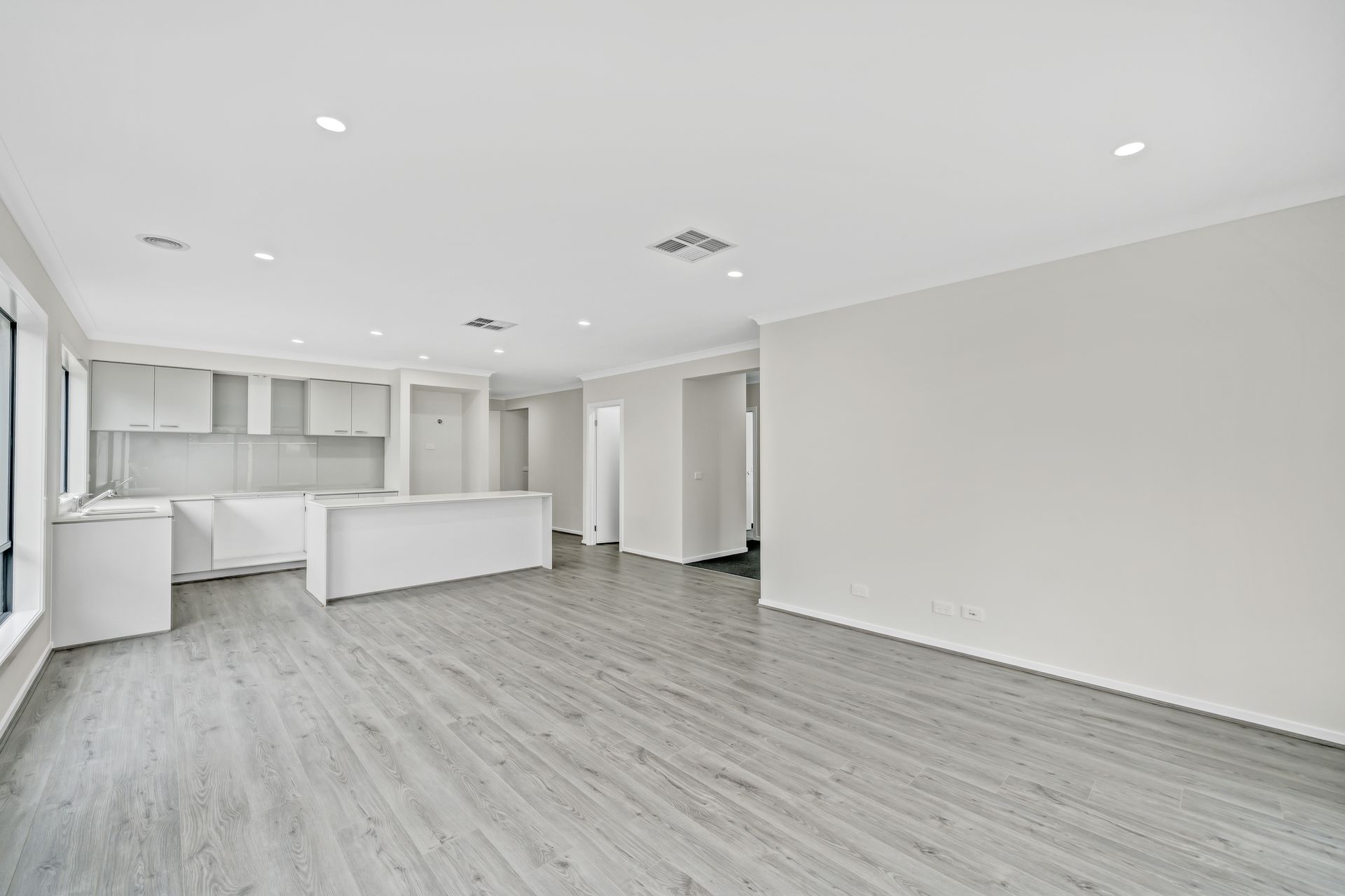 - Kitchen overlooking the family and meals zones