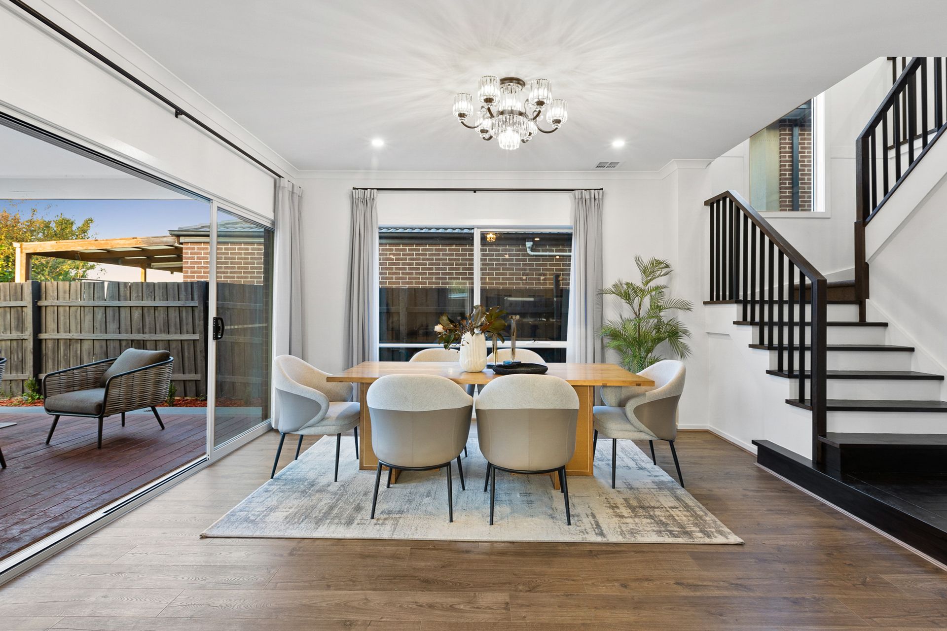 Stacker sliding doors extend the space out onto a covered, alfresco deck and landscaped, child-friendly backyard where active children are bound to love spending time in the sunshine.