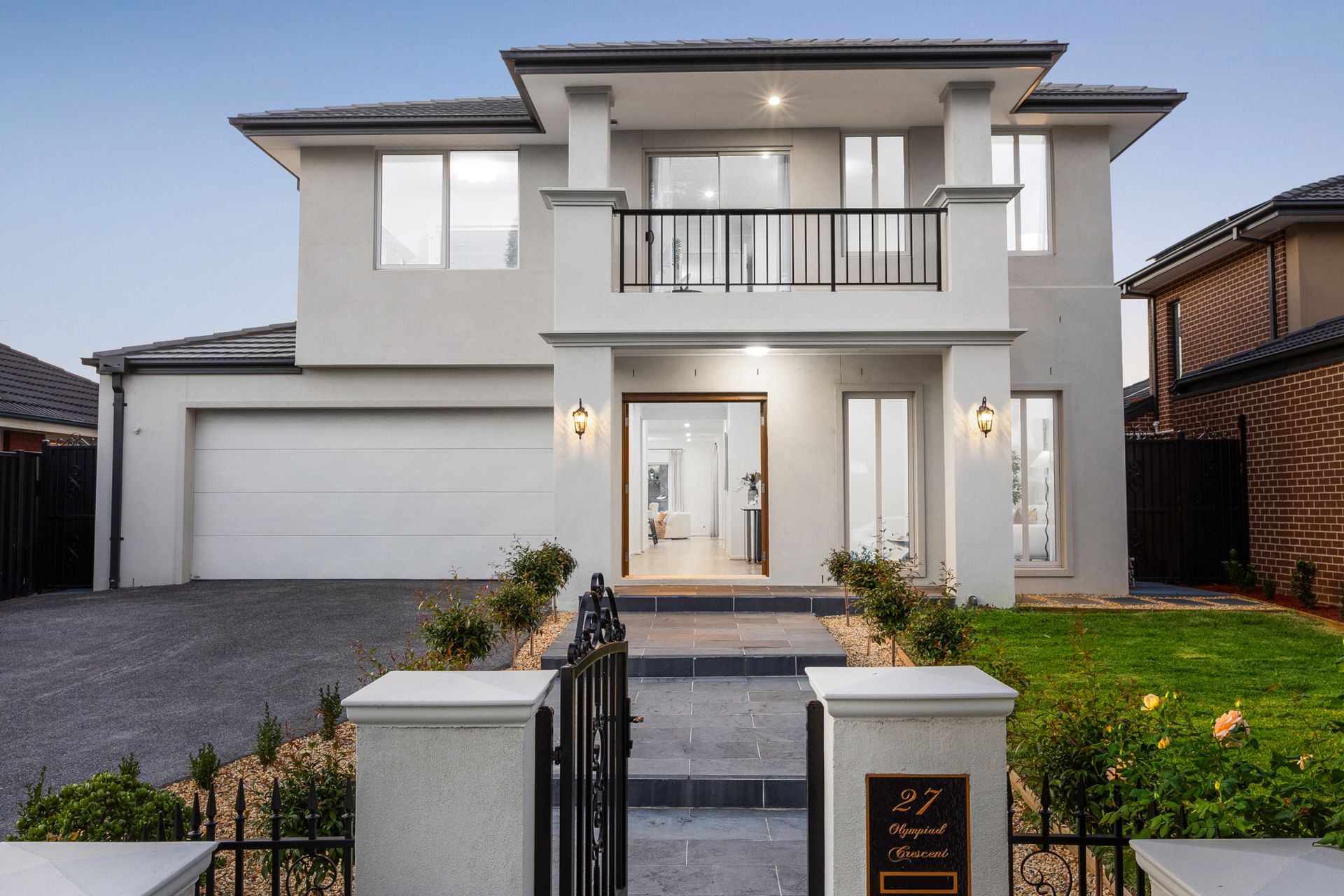 Arriving upstairs, a lavish retreat welcomes you and flows through to the four bedrooms, all with walk-in-robes including the master bedroom boasting a sitting area, balcony, dressing room and luxe dual vanity ensuite, further served by a family bathroom and separate toilet.