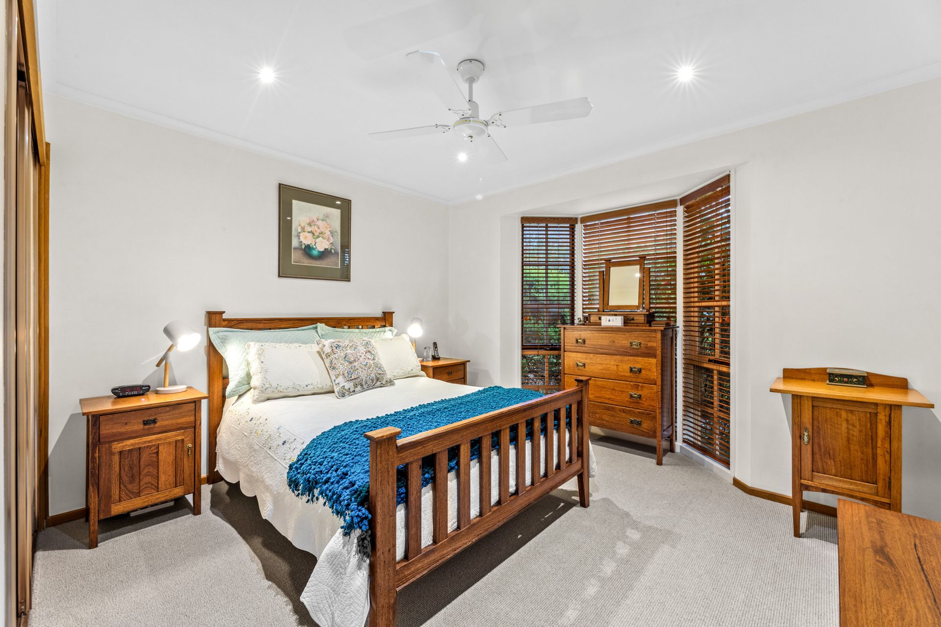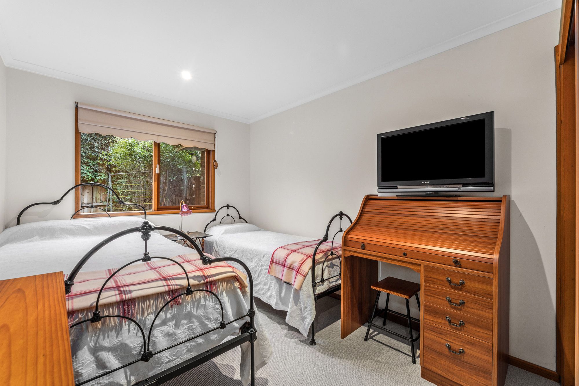 Designed with practicality in mind, the two bedrooms feature built-in robes and fresh New Zealand wool carpets. The family bathroom includes a private 2-way powder room for added convenience.