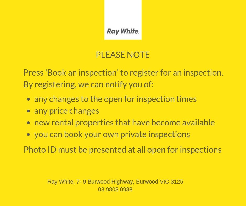 - To be advised of our next available inspection click BOOK AN INSPECTION and inquire to register for the next inspection. By registering we can notify you of any changes or cancellation