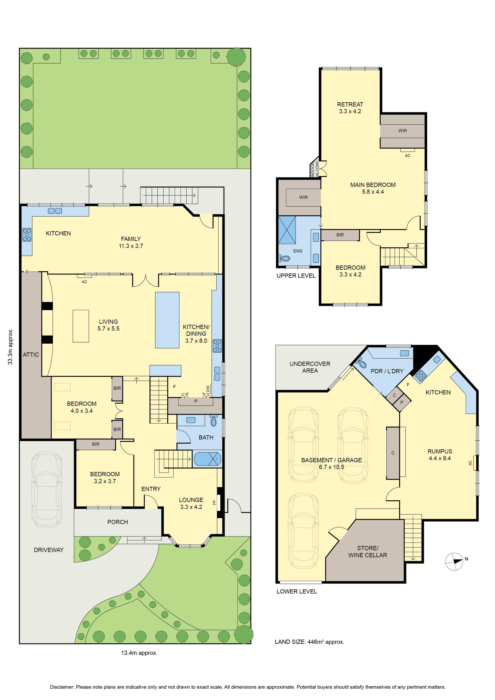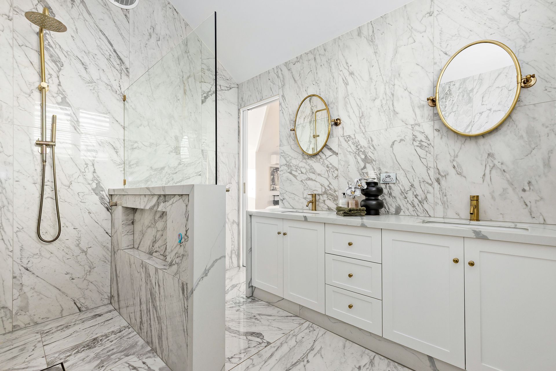 Multiple living zones provide outstanding versatility, including an elegant formal lounge and a vast lower-level retreat featuring a kitchenette and direct access to the rear garden - ideal for entertaining, multigenerational living or a home theatre. The accommodation is led by a luxurious main suite with a dramatic timber feature wall, walk-through robes and a hotel-inspired ensuite finished in Italian porcelain tiles with brushed brass tapware. Additional bedrooms are generously proportioned and serviced by beautifully appointed bathrooms, with the home further enhanced by an alarm system and security cameras for peace of mind.