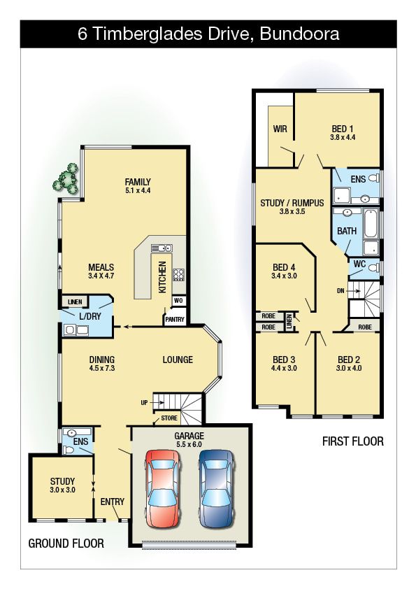 4 Bedrooms (Walk in Robe + Ensuite to main)