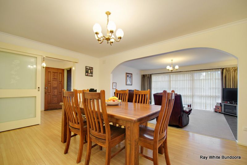 Located in Bundoora's sought after Norris Bank Estate, this beautifully presented property is set in a quiet court location and amongst an established neighbourhood. Deceiving from the front, this property offers a surprising amount of living space and rarely found parcel of land measuring in at an incredible 773m2. Upon entering you will be welcomed through to a generous lounge area adjoining a well proportioned dining area which will accommodate perfectly for those large family get-togethers with ease. The kitchen is presented in solid timber and overlooks a spacious meals living area . Comprising of 4 generous bedrooms, with the master suite offering an ensuite and extensive robes. Other features include a study area, well maintained gardens both front and back including an array of fruit trees and established garden beds that are easily maintained by an irrigation system and just over 22,000 litres of tanked water. Car accommodation is offered by a huge lock up under cover carport that will easily accommodate for 4 cars plus a double lock up garage to the rear, perfect for any man and all his toys. Throw in all year round comfort of heating, cooling and neighbouring parklands makes this property the perfect home for the whole family to enjoy.