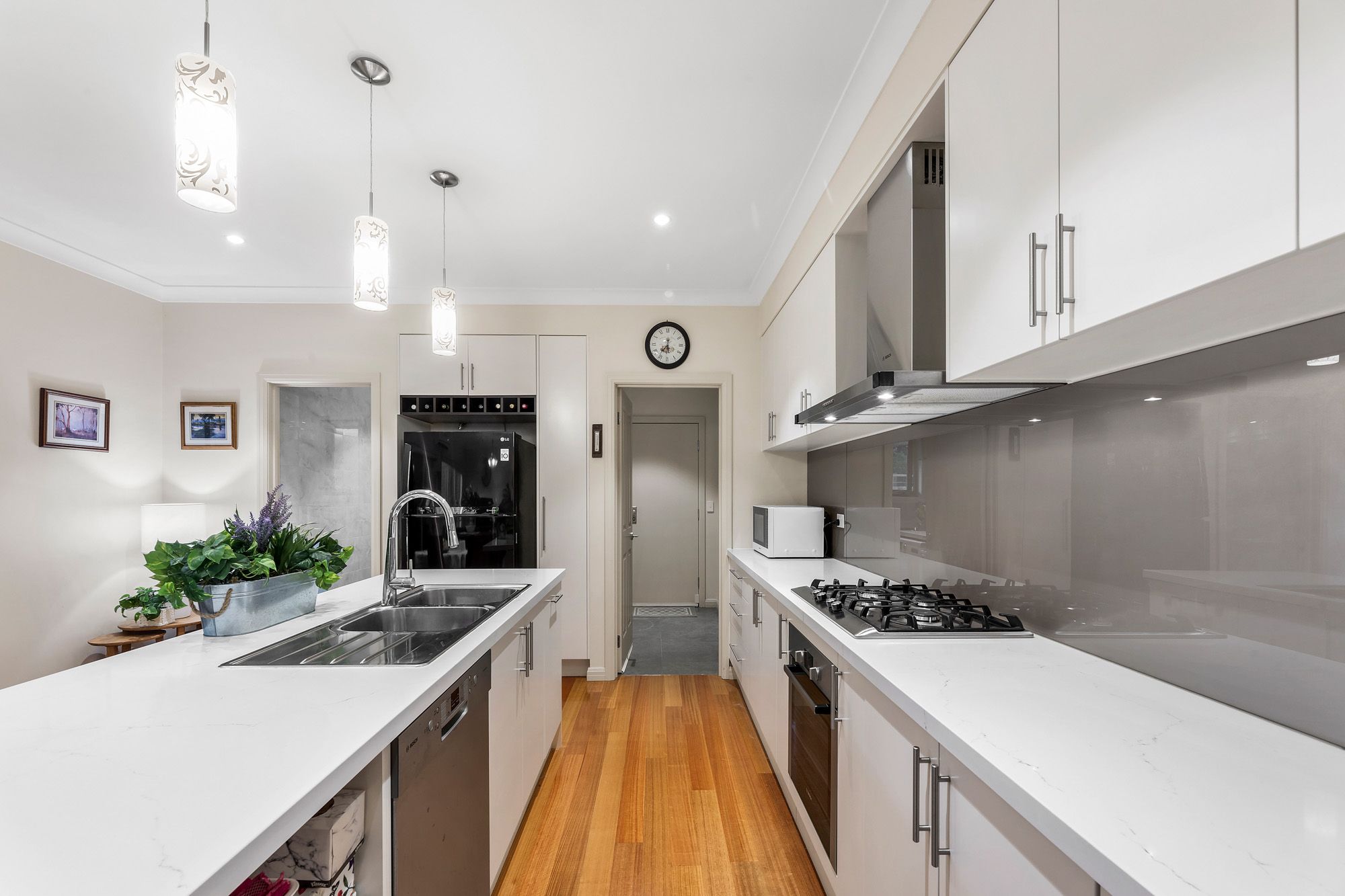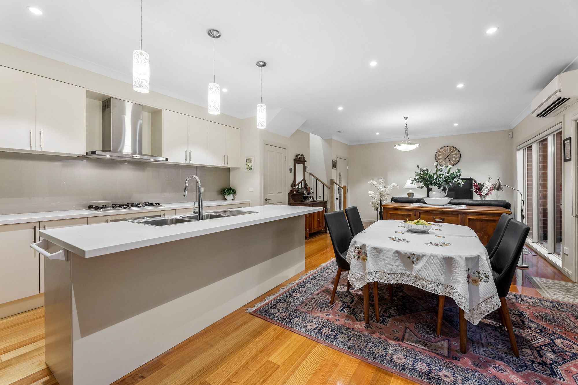 This exceptional contemporary townhouse offers a luxurious and low-maintenance lifestyle in a sought-after family location. Boasting high-end finishes throughout, this property features solid timber flooring, providing a warm and inviting ambiance that complements its modern design.
