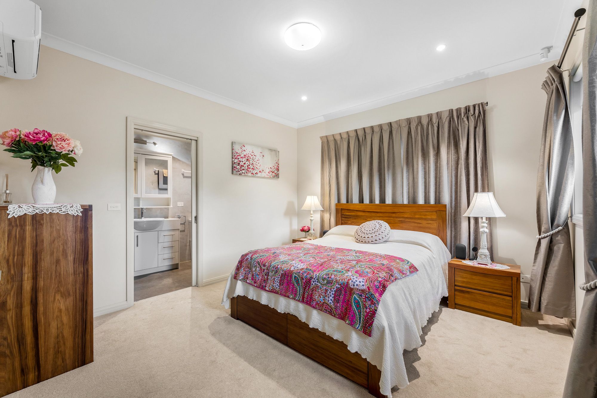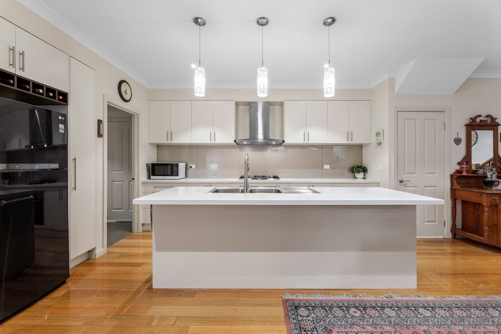 This home also includes a range of additional features, including a remote control double lockup garage, a security alarm, six reverse cycle systems, and a 2000L water tank that collects rainwater to flush all toilets.