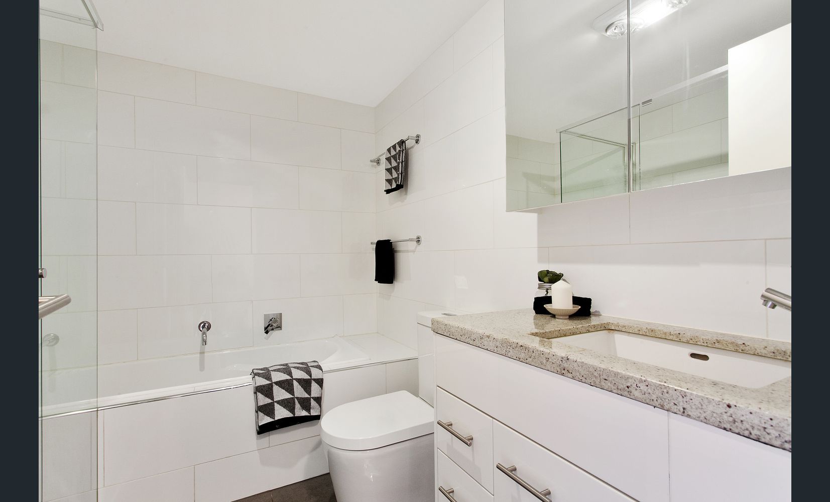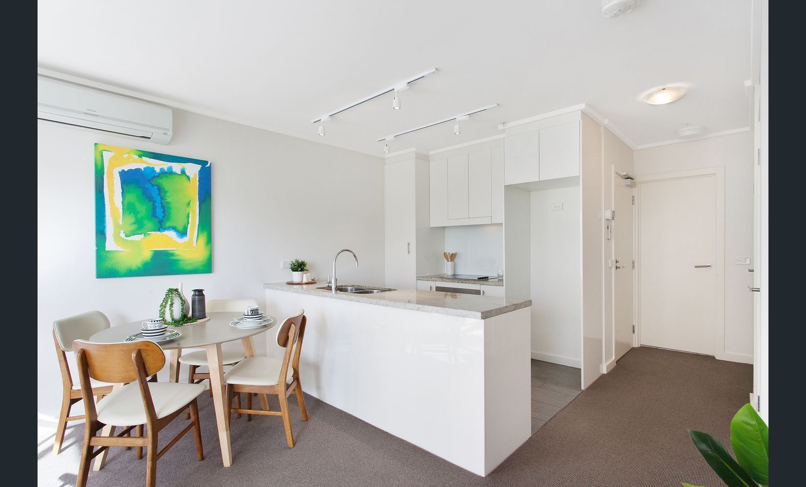 Open your apartment door to a generous hallway where it leads you to an open plan living/dining area opening out to a private balcony, state of the art Stone benchtop kitchen with stainless steel appliances (including oven, cooktop and ample cupboard space), store room, Euro Laundry and a powder room.