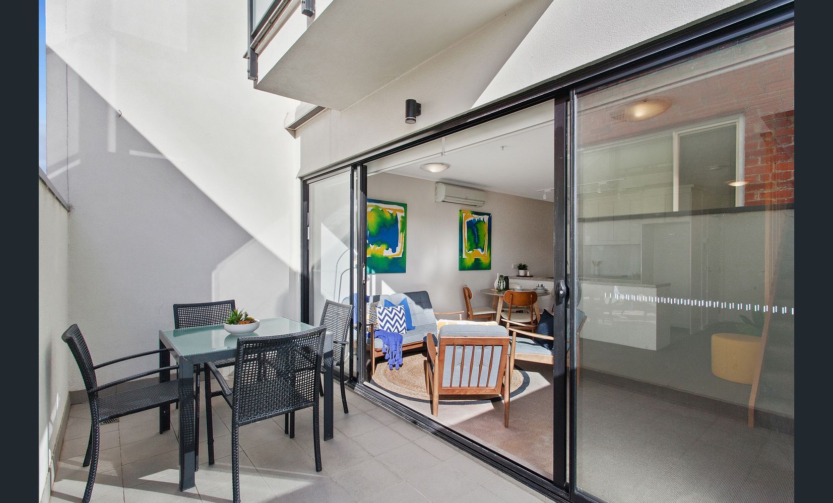 Featuring Master Bedroom with reverse cycle conditioner and a private balcony, 2nd bedroom with BIRs and reverse cycle conditioner, central bathroom/toilet with bath tub and walk in shower.
