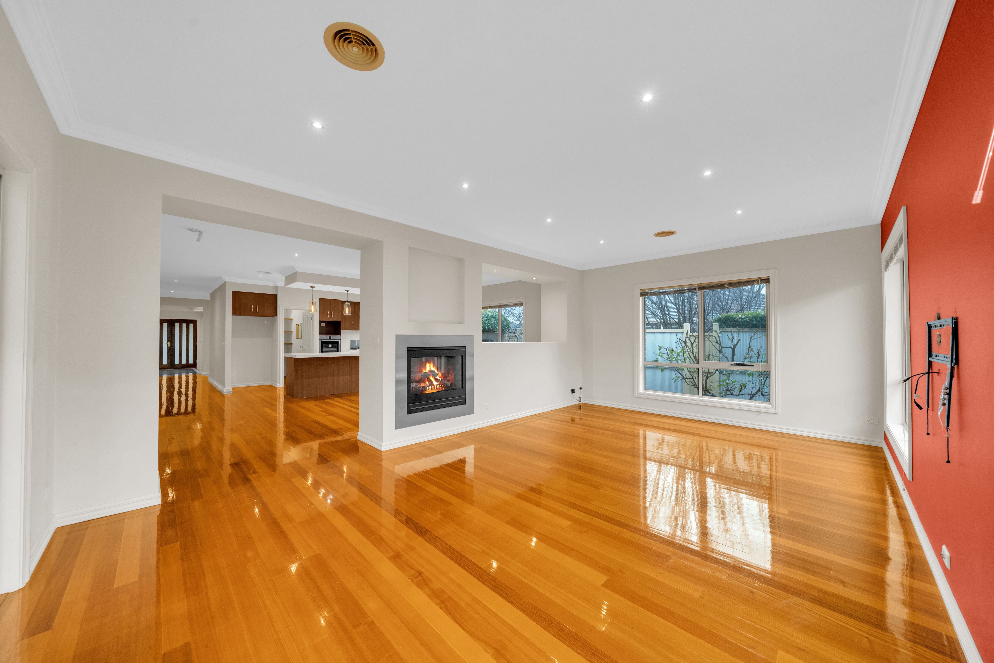 - Huge & open plan meals area and lounge room with double face gas fire place