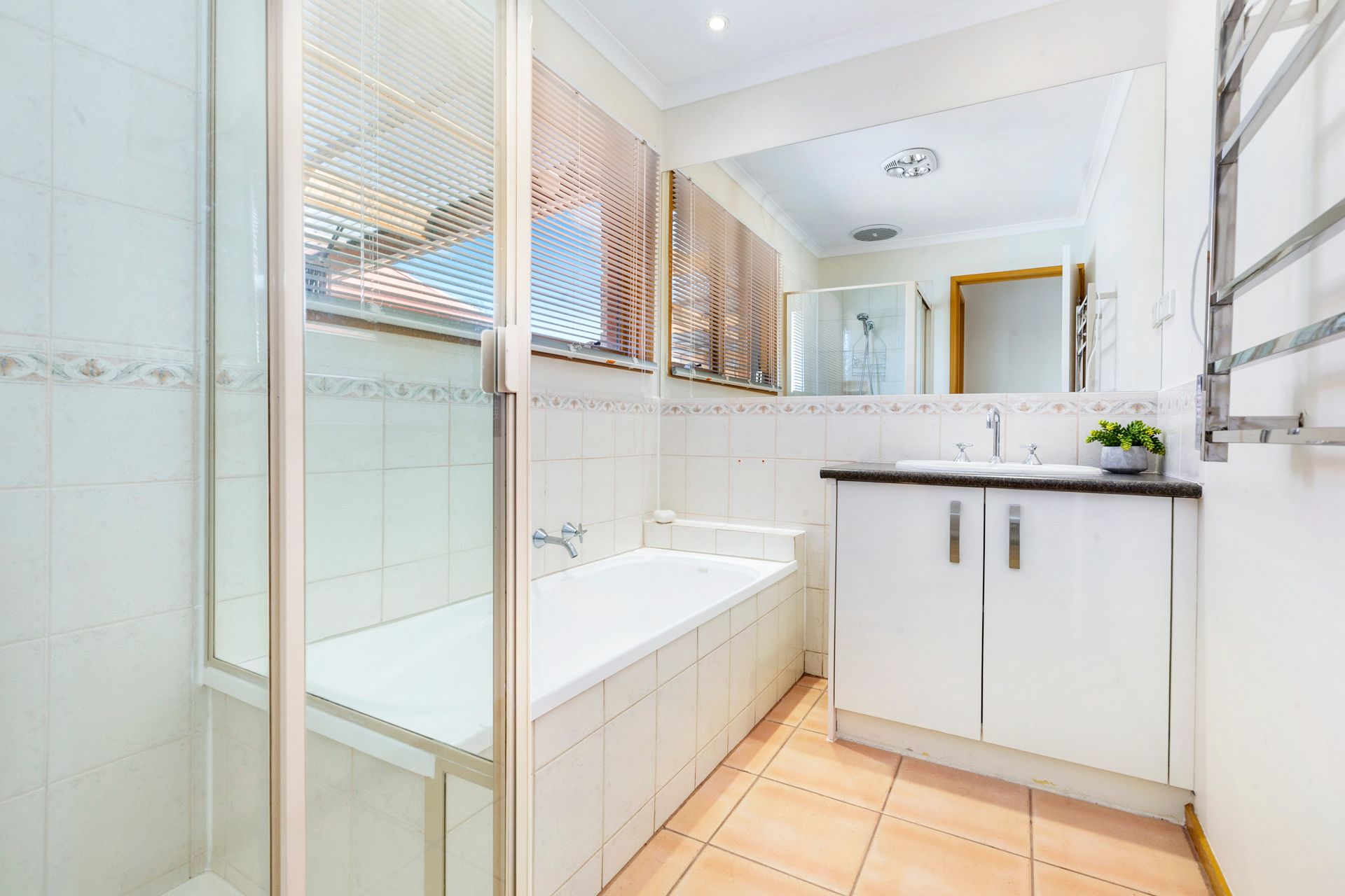 Opposite the kitchen leads to a further two more bedrooms both with double built in robes, a central bathroom with separate bath and shower as well another (separate) toilet.