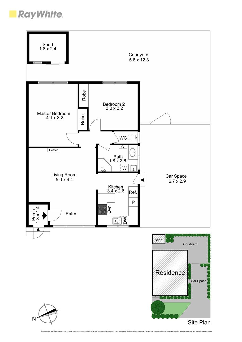 Two generous-sized bedrooms are fitted with built-in robes and serviced by a bright bathroom with laundry facilities, while the home's low-maintenance appeal extends to the private paved courtyard, which requires minimal upkeep and is decorated with mature trees.