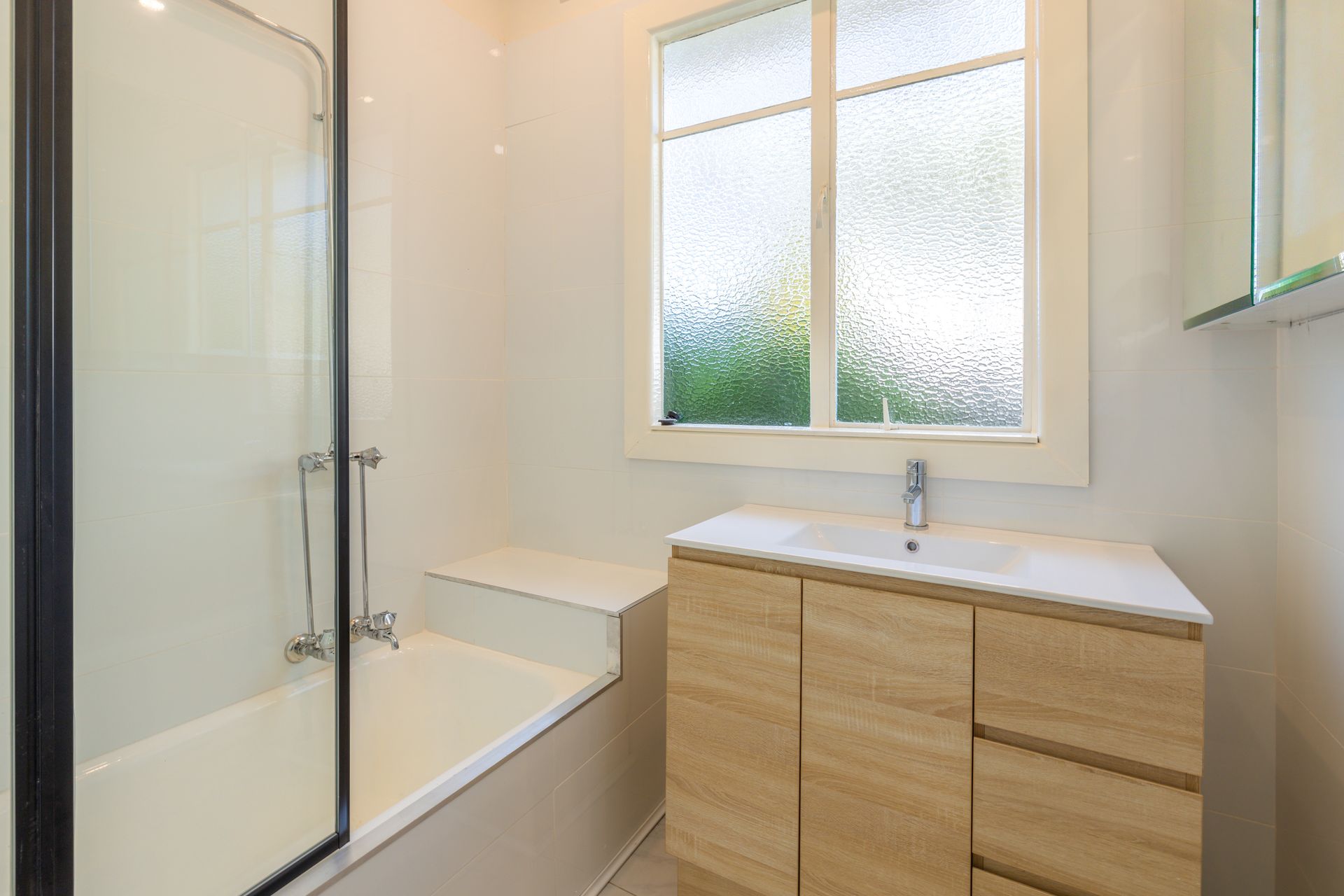 * Central bathroom with shower over bath and new vanity