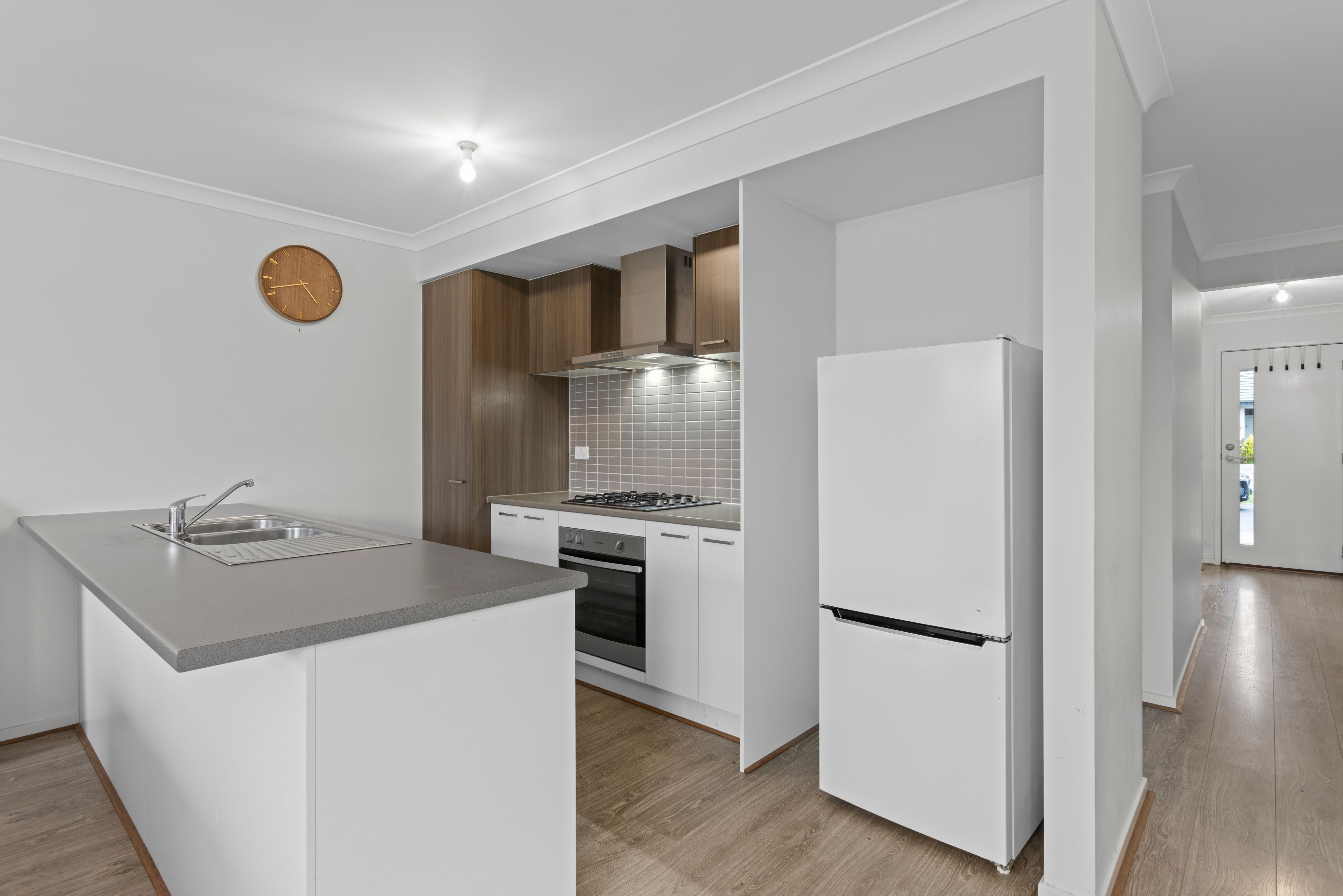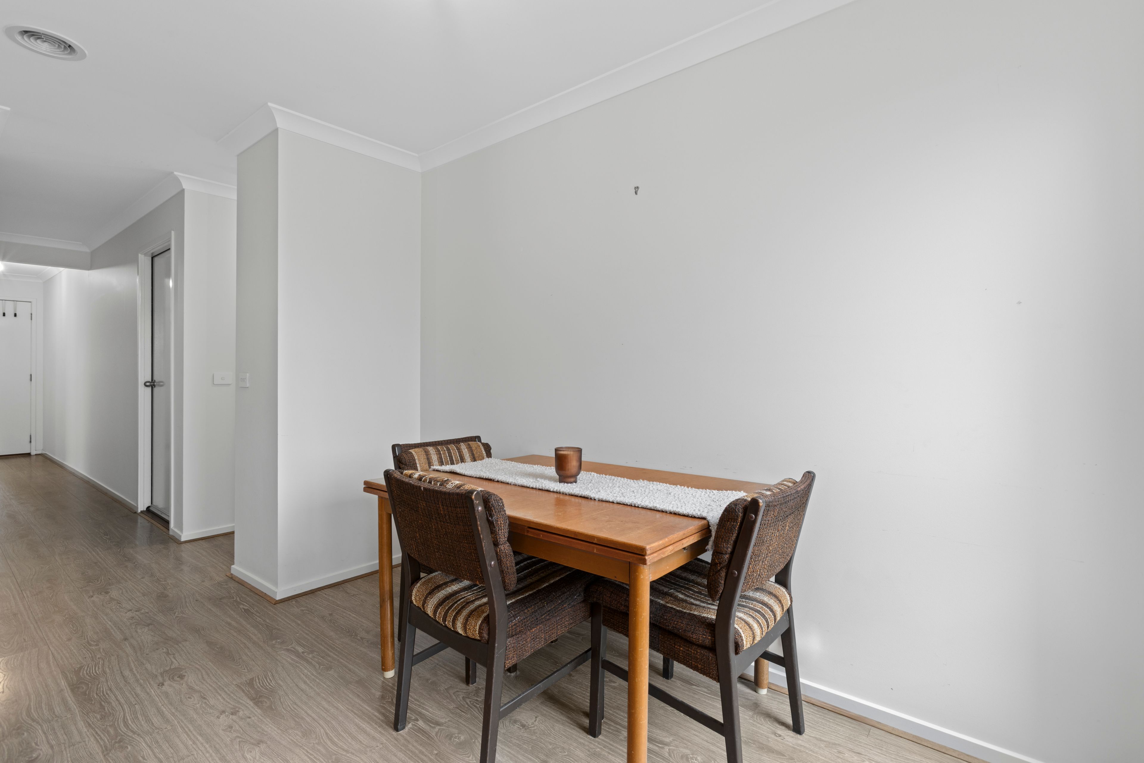 Moving through the home, the central living hub is both inviting and functional. The galley-style kitchen features sleek cabinetry, stainless steel appliances and ample preparation space, seamlessly connecting to the adjoining dining and living area. This open-plan layout creates a natural flow, ideal for both relaxed day-to-day living and entertaining. Ducted heating throughout ensures year-round comfort, while the second bedroom, fitted with built-in robes, offers flexibility for guests, a home office or additional living needs.
