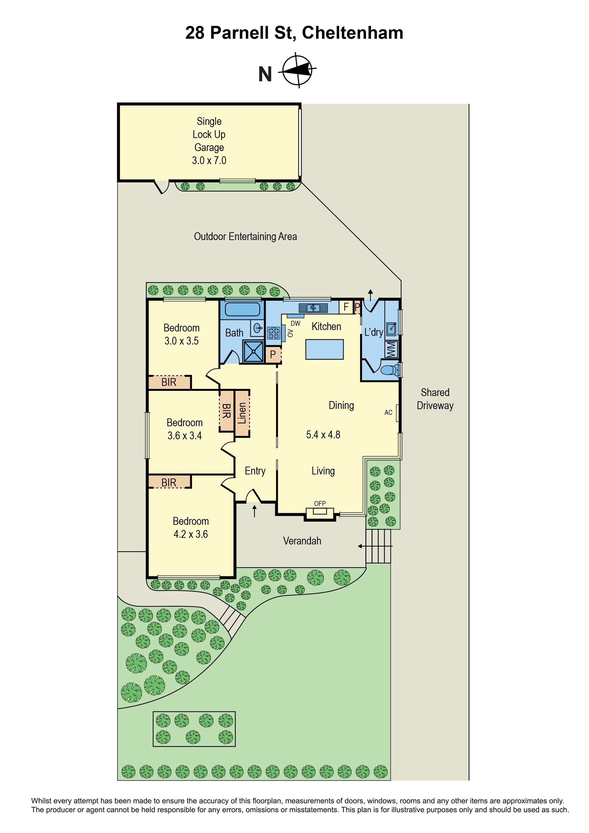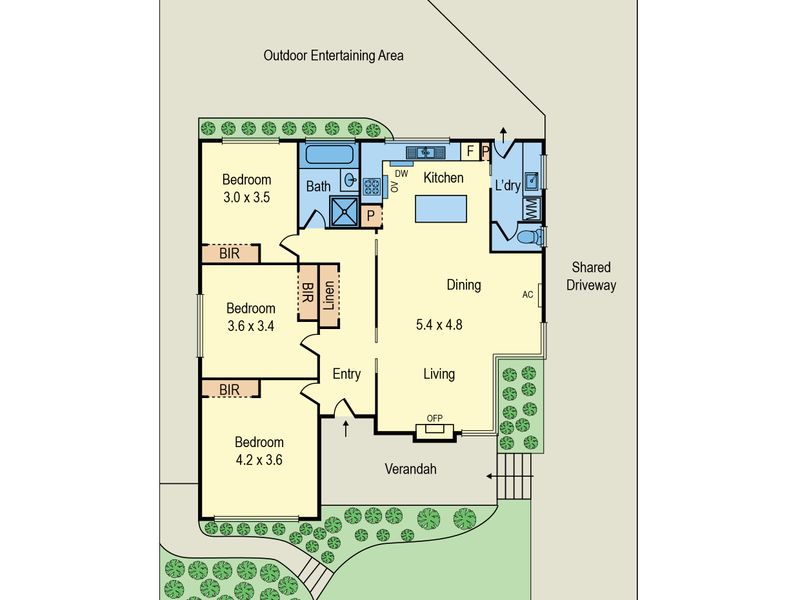 Three large bedrooms with built-in robes, a bright family bathroom with a bath and a shower, a separate toilet and a laundry.