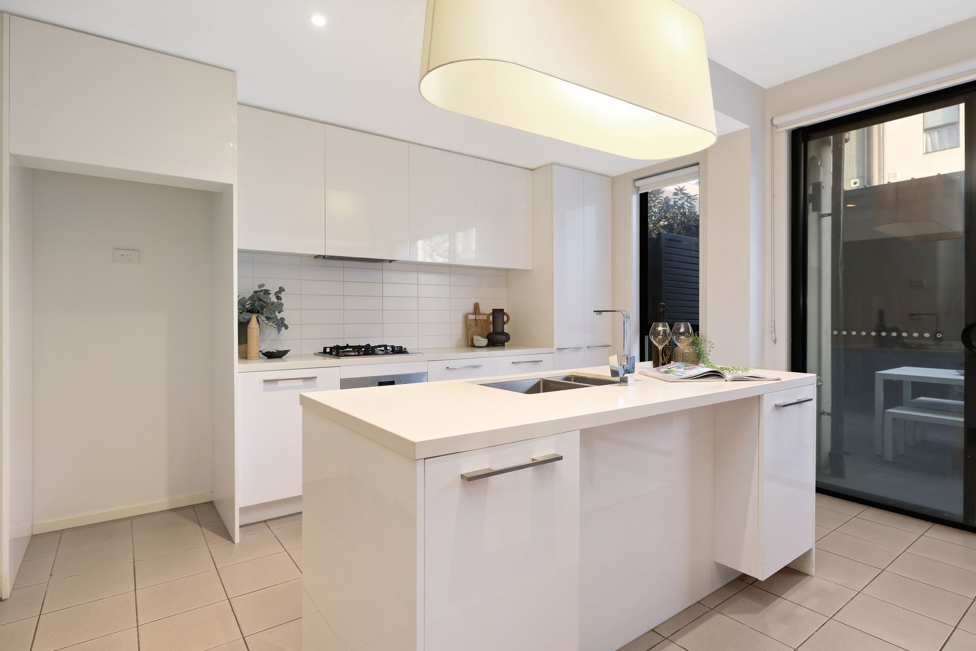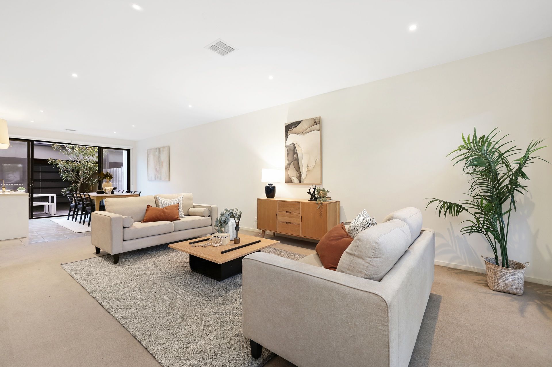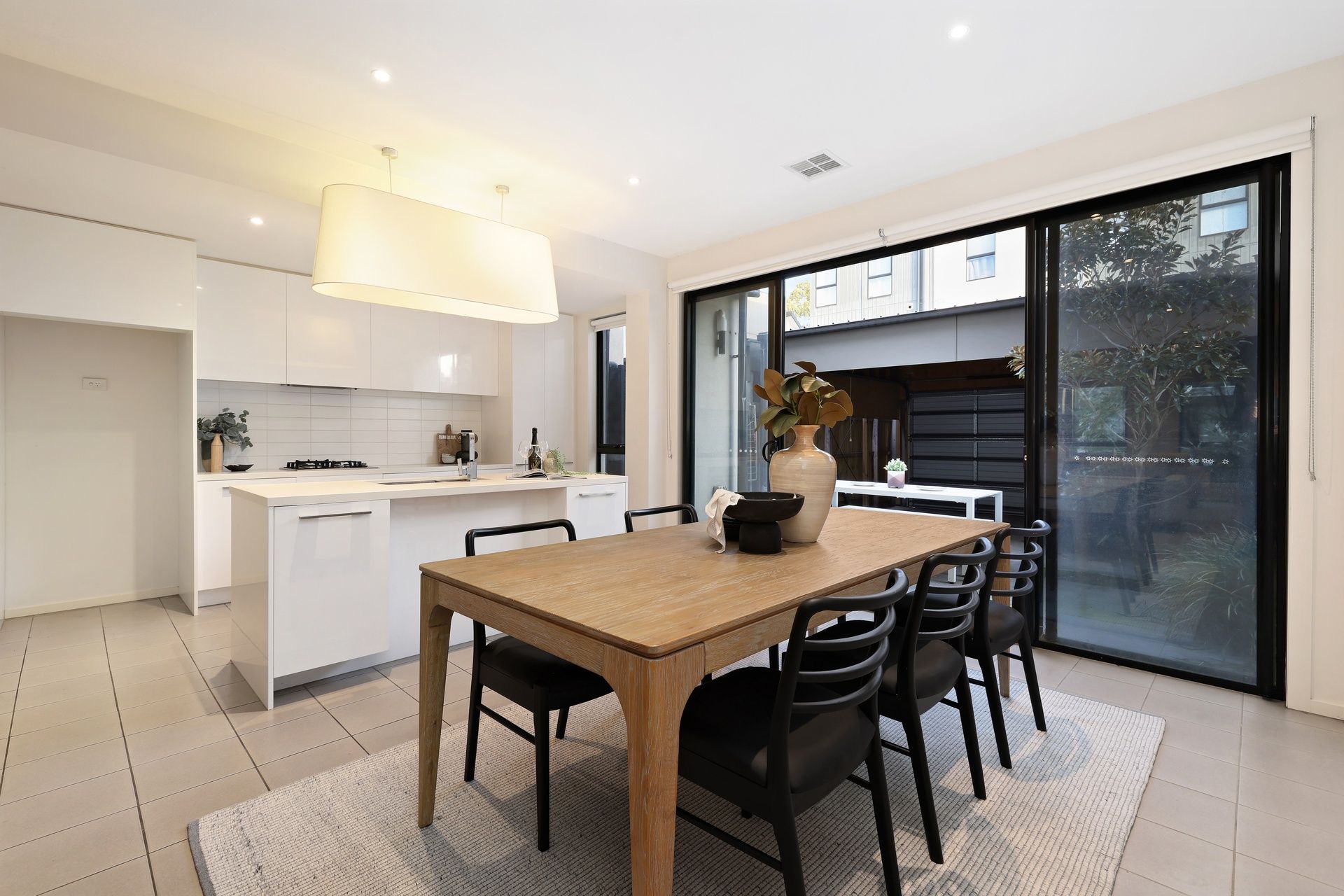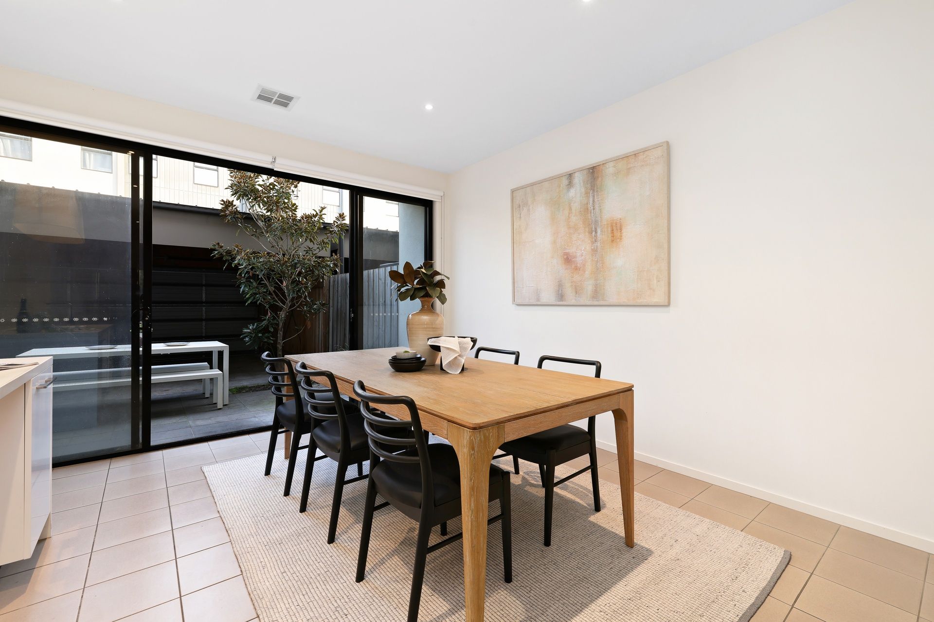 Seamless indoor-outdoor flow connects the living area to a private courtyard, perfect for entertaining, with secure access to the enclosed garage for added peace of mind.