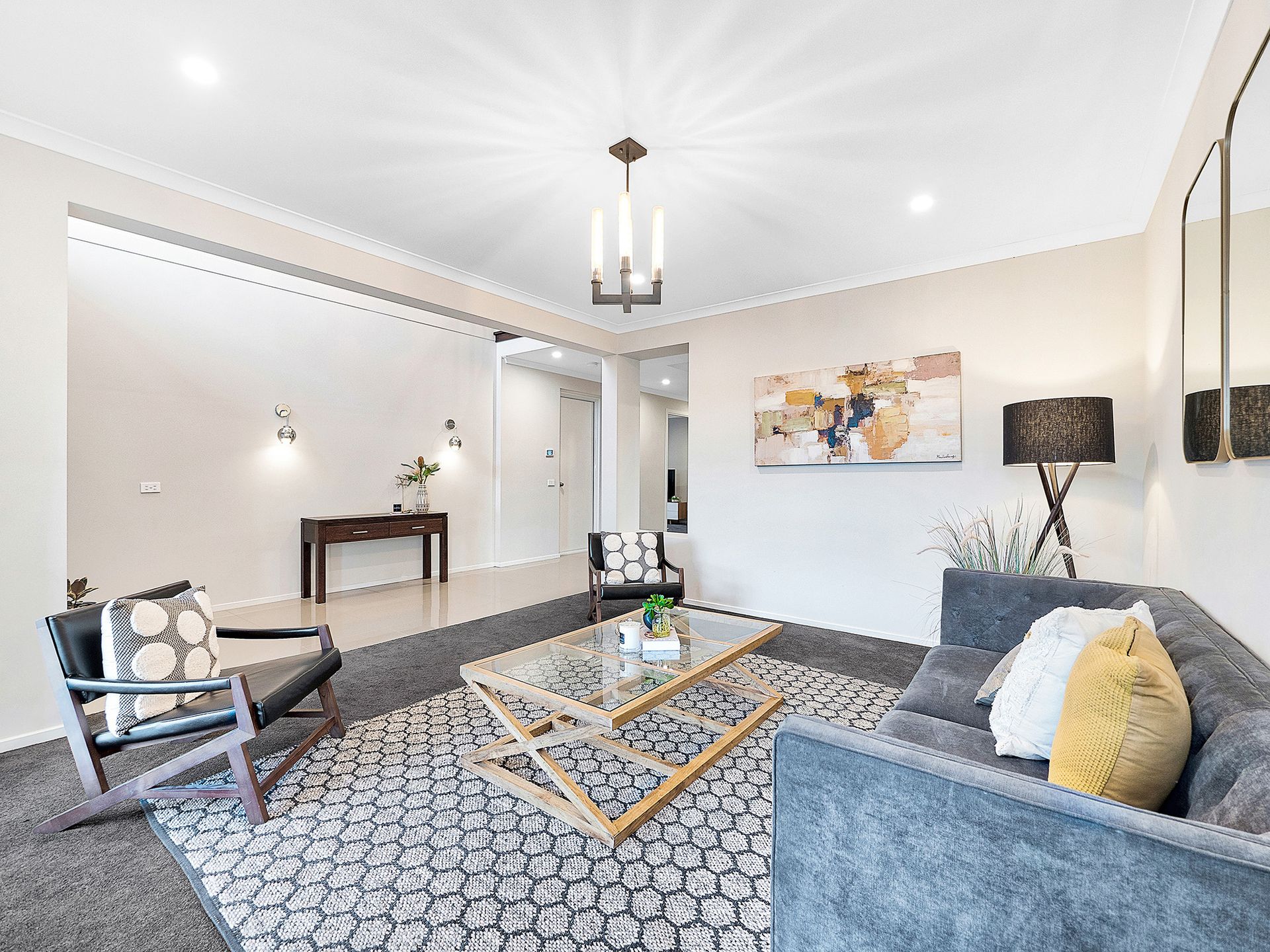 The backyard at 101 Newgrange Blvd is gorgeous, with a covered alfresco and tiled providing ample entertainment space and delicate greenery continue the theme of elegance outdoors.
