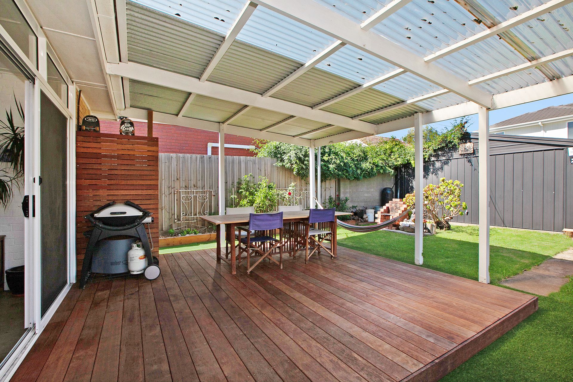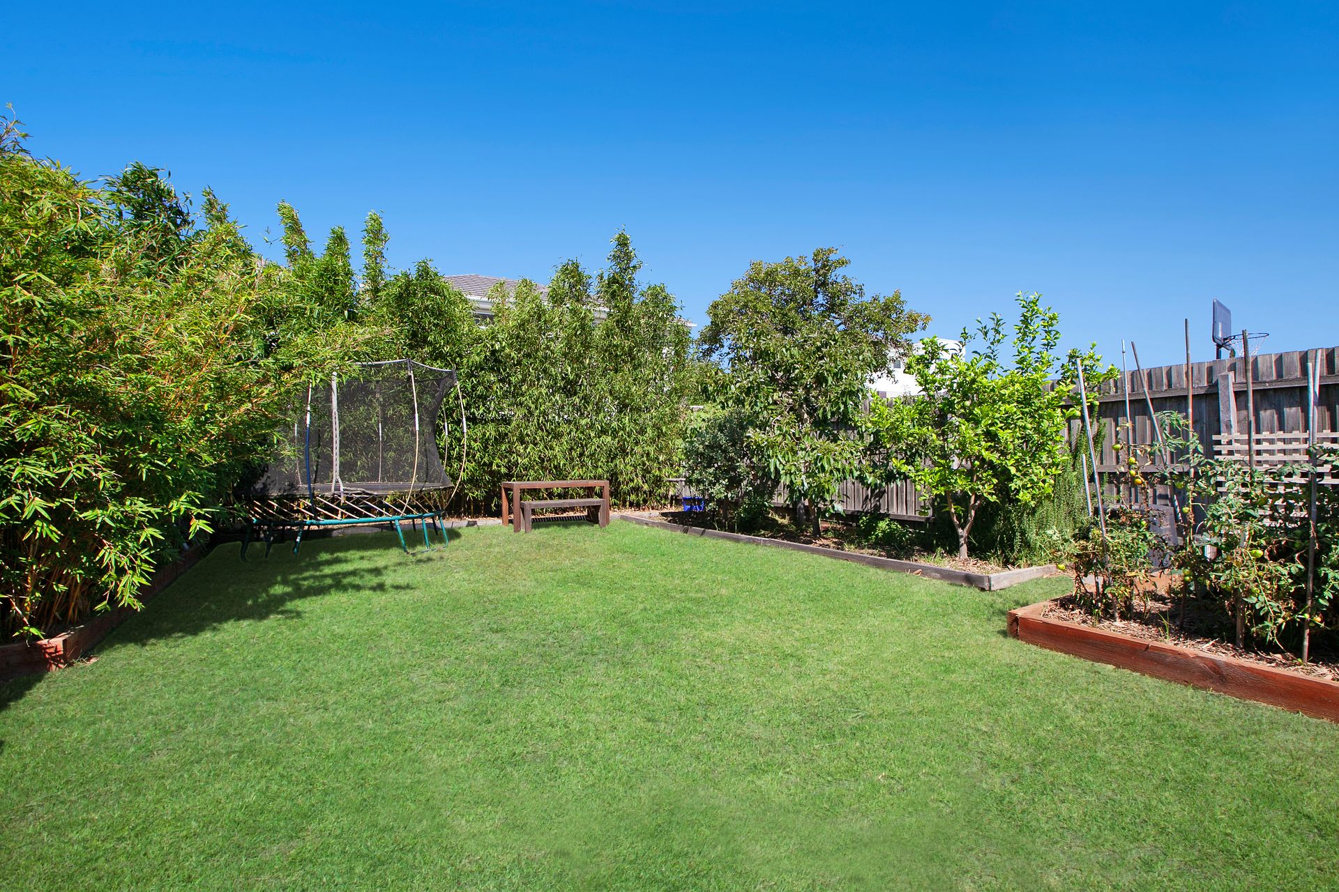 The undercover hardwood decking provides the perfect place to enjoy the beautiful outdoors area with more than enough space to have that Sunday brunch with the loved ones or to host that weekend BBQ with the work friends. Take in a soothing look across the private and peaceful backyard adorned with bountiful fruit trees and decorative bushes, surrounded by a row of oriental bamboo.