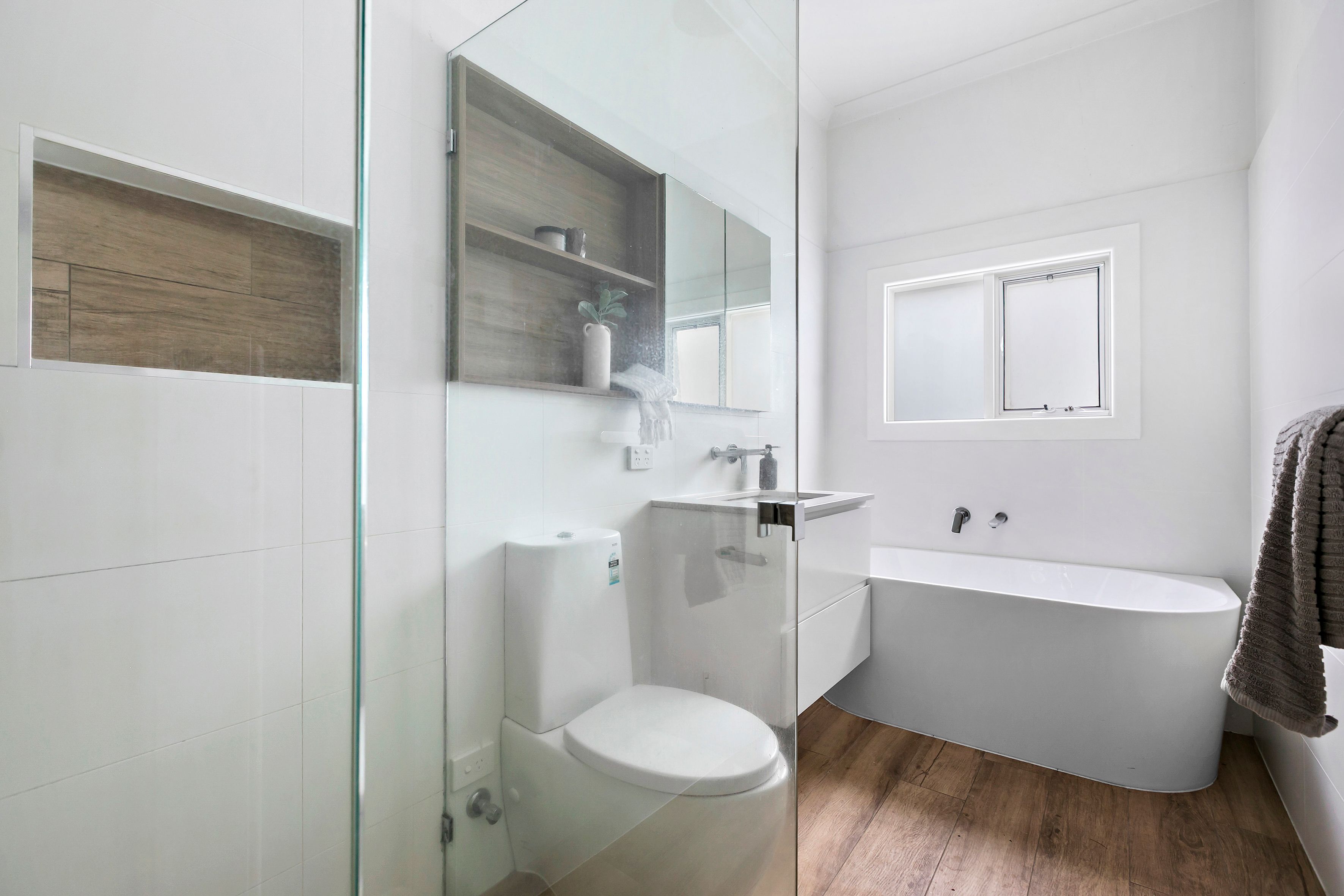Three spacious bedrooms, all with built-in robes, offer peaceful retreats, while the central lounge provides a relaxed living space anchored by a feature fireplace. The updated kitchen and dining zone is bright and practical, with excellent storage, gas cooking and views to the expansive backyard. A modern renovated bathroom with high quality features and a freestanding tub adds everyday luxury, complemented by a full-size laundry.