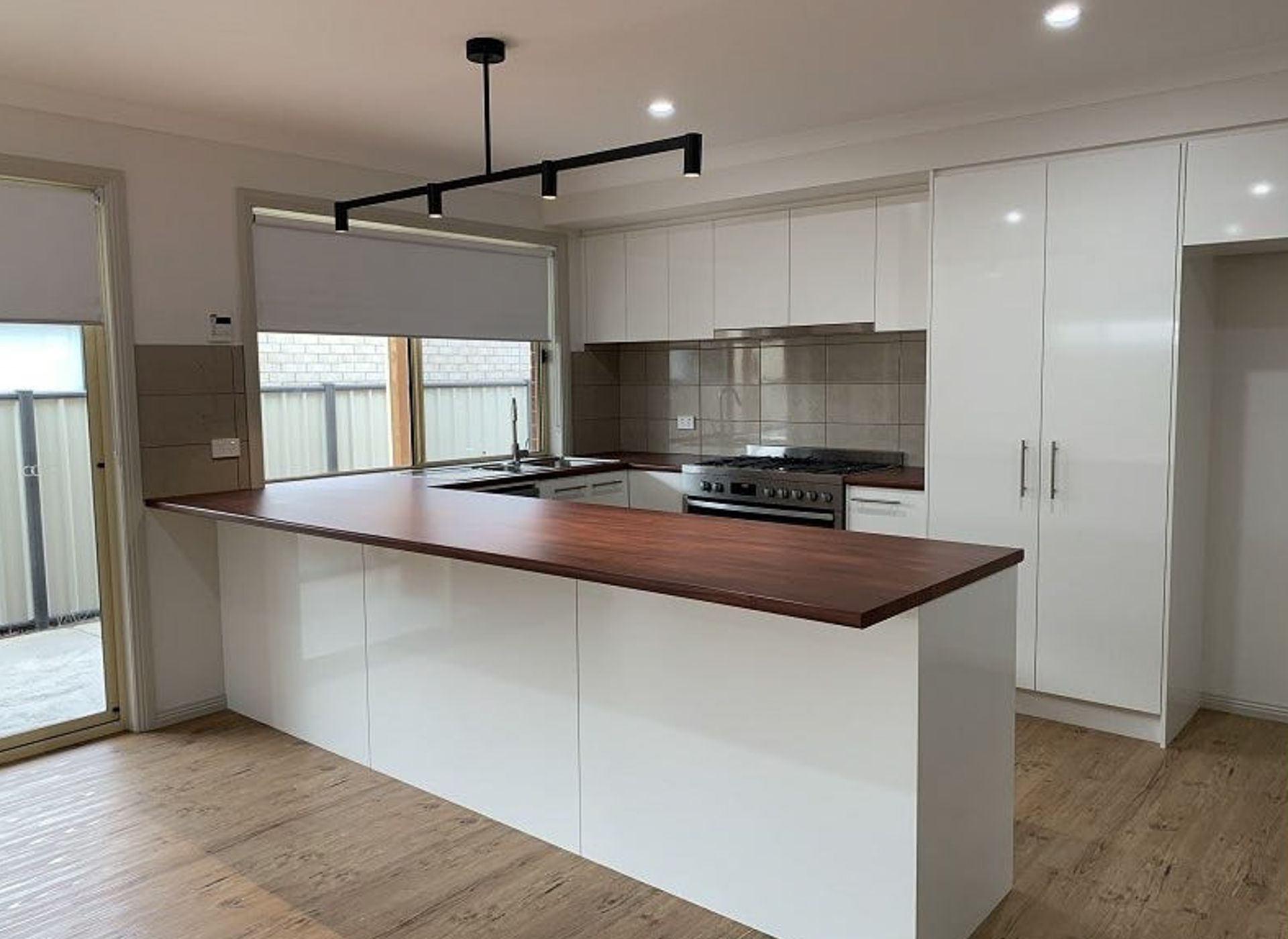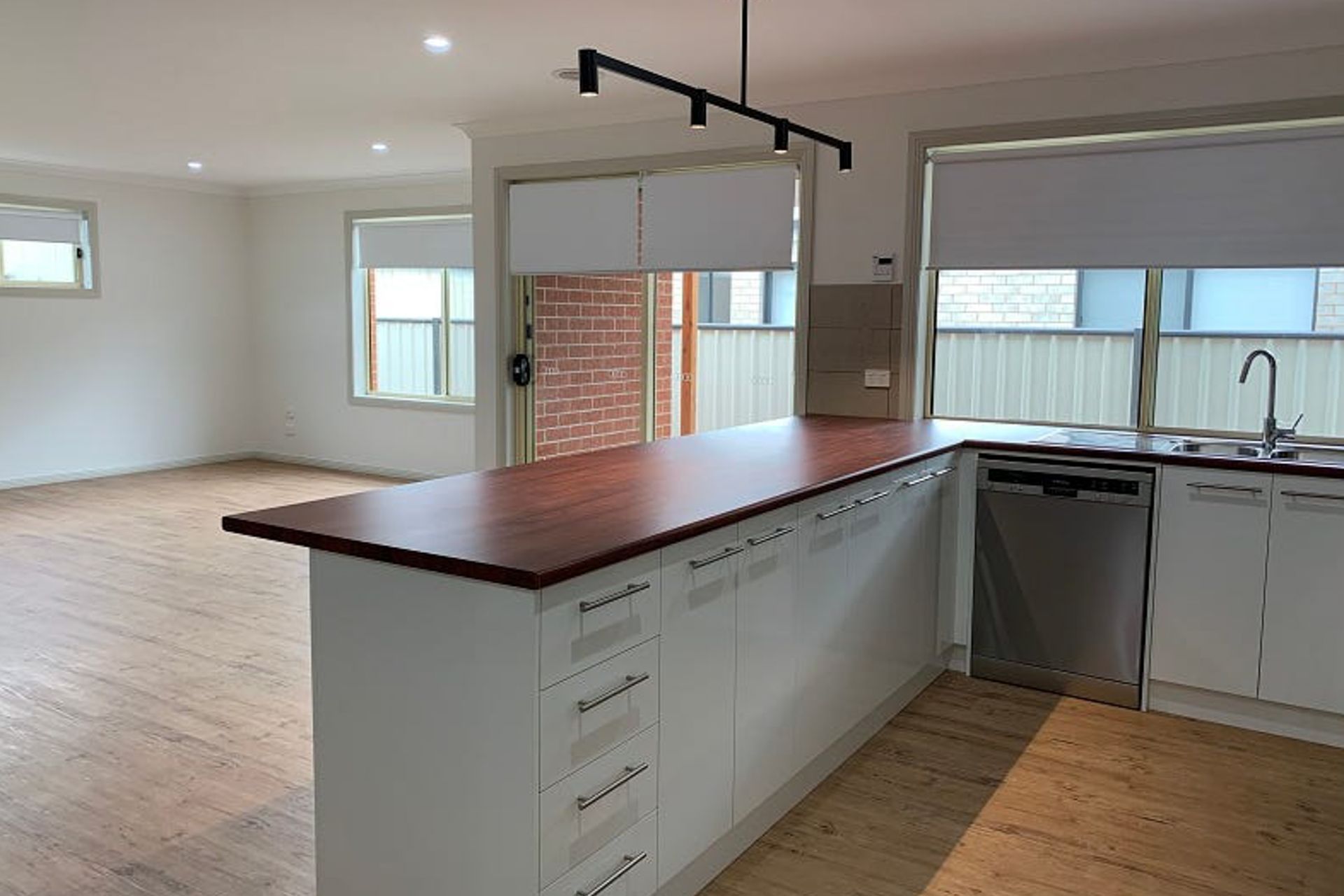 The amazing kitchen with great cupboard space, gas cook top, adjoining spacious dining and living area, perfect for area for family time!
