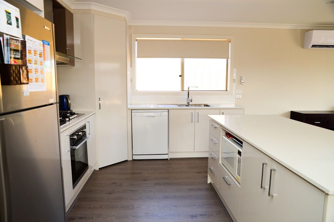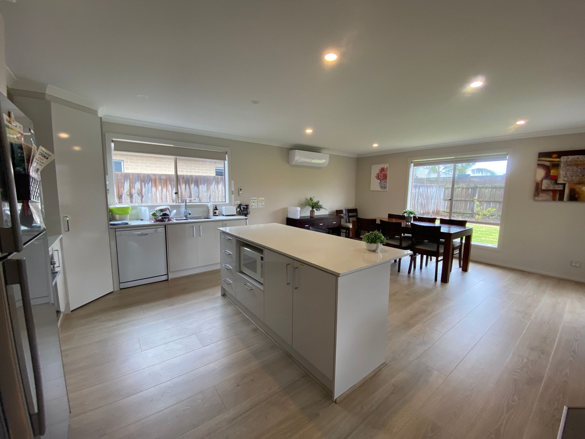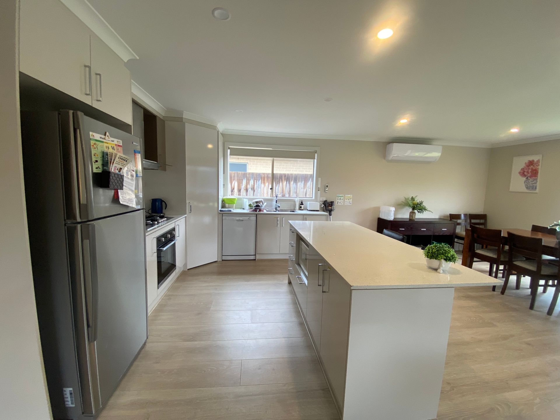 Comfort is a priority with two of the bedrooms fitted with split systems, ensuring a climate-controlled environment year-round. The open plan living, kitchen, and dining areas are modern and beautiful, creating a welcoming space for relaxation and entertainment.