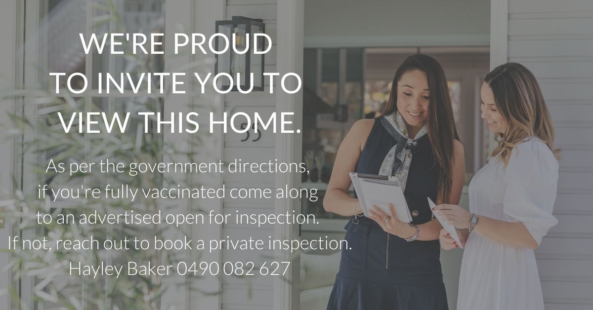 "As per the government directions, if you're fully vaccinated come along to an advertised open for inspection. If not, reach out to book a private inspection."