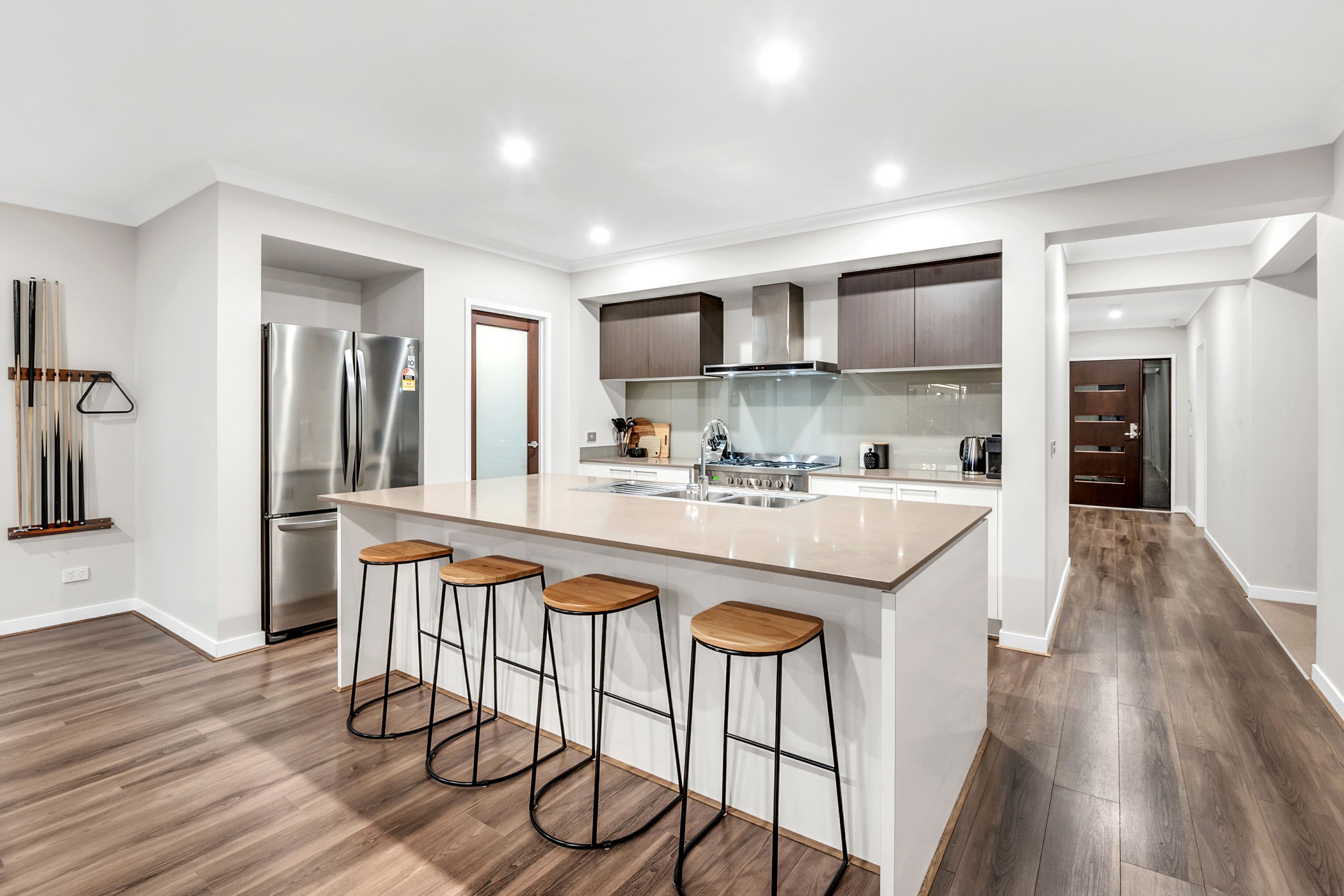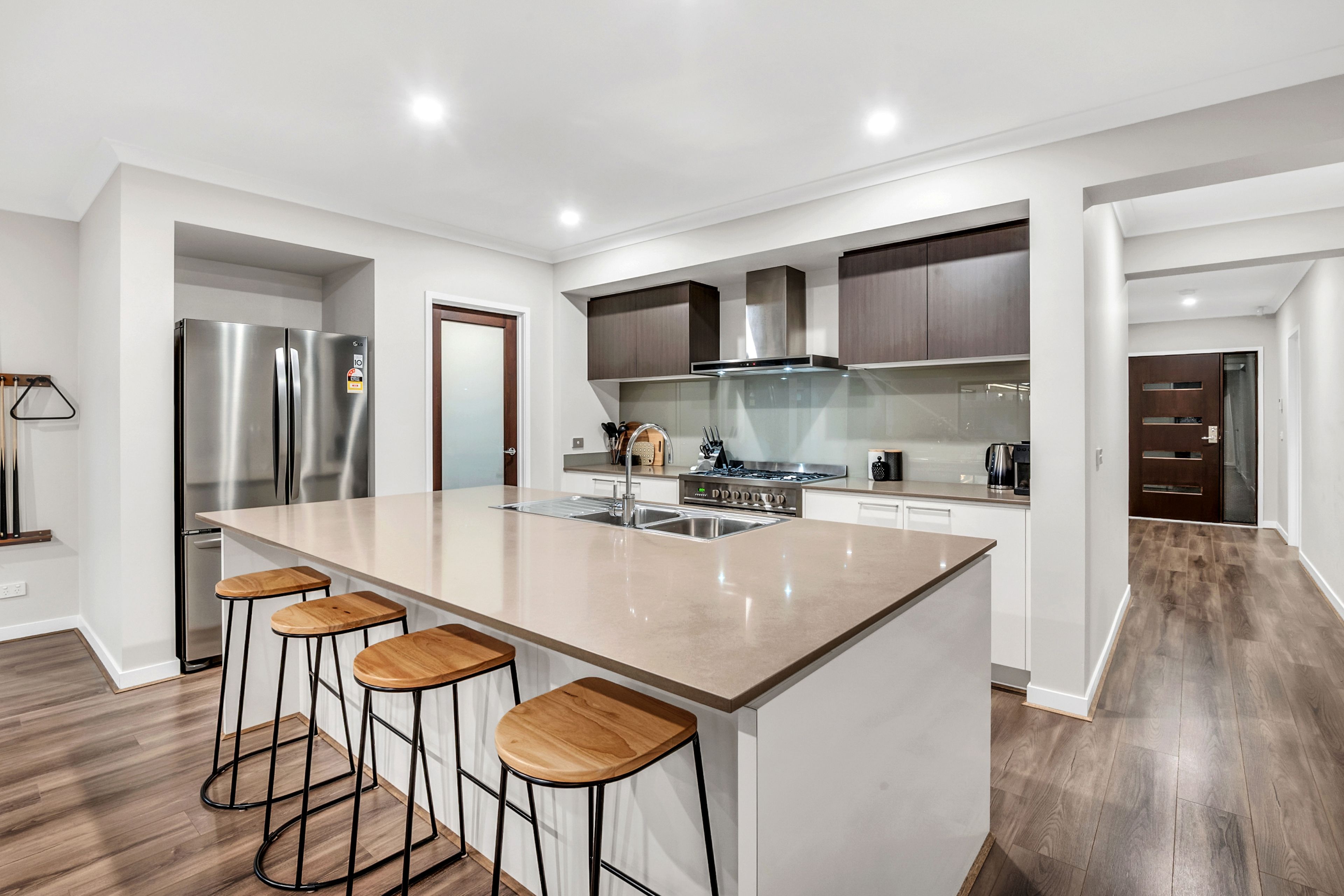 Comprising of 4 great sized bedrooms, huge master with walk-in-robe, dual vanity ensuite, 2 inviting living zones, including formal/theatre, open plan family zone, conveniently placed dining area, a striking stone-top kitchen with a colossal island bench, fully equipped with 900mm stainless steel appliances, and walk-in pantry. The kitchen is truly sublime!