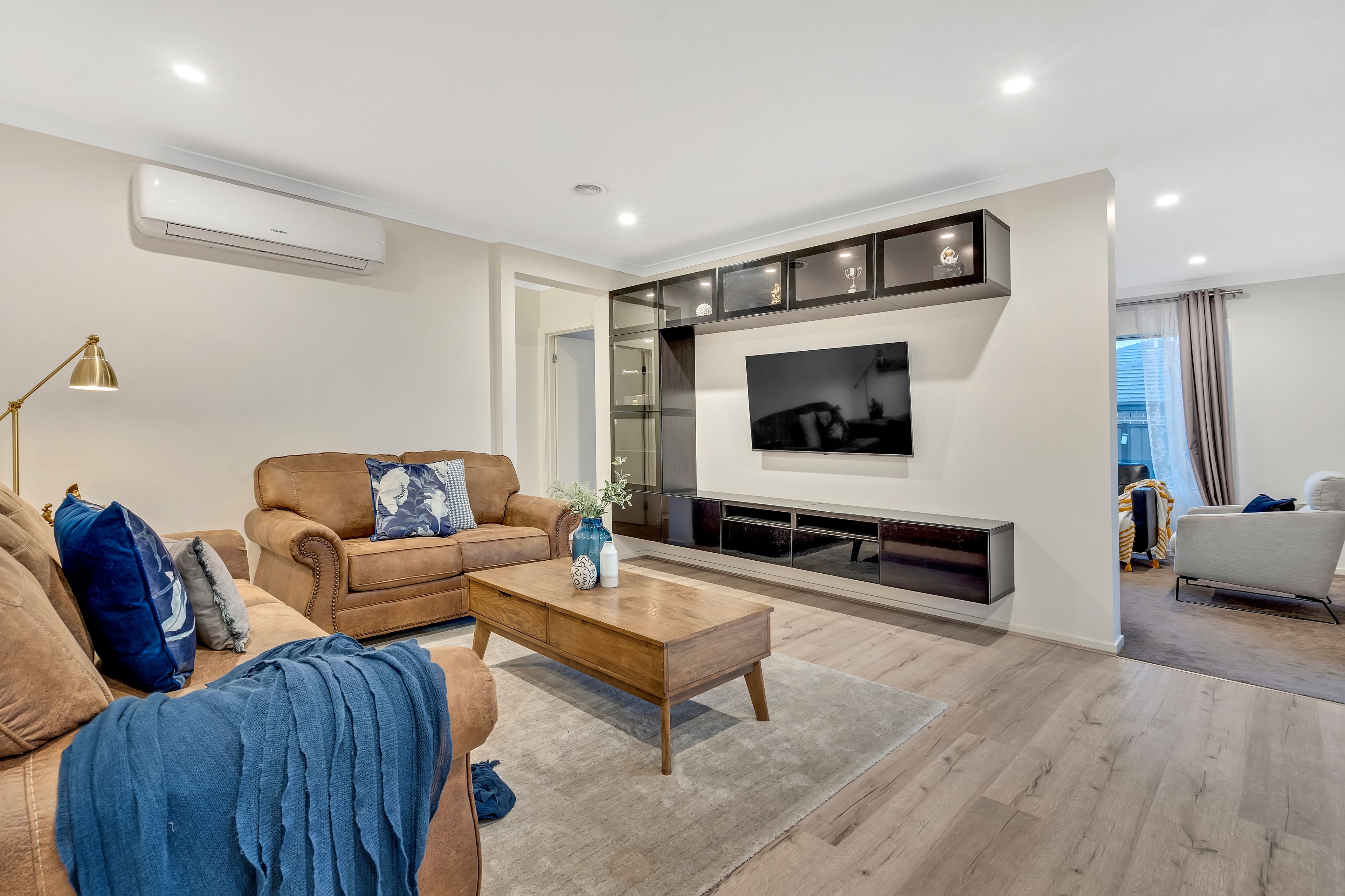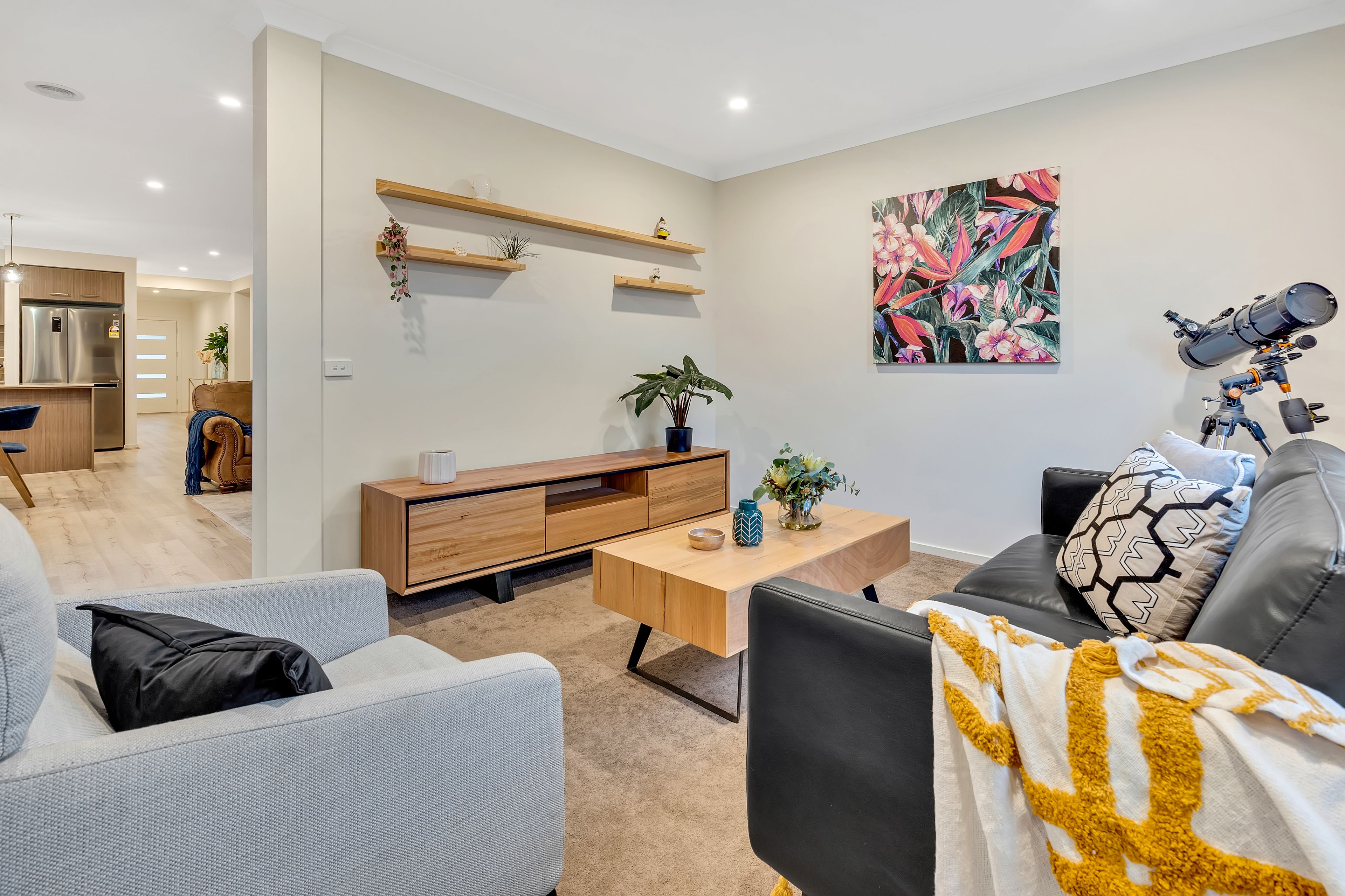 Outdoors are accessed via two sets of sliding doors that glide back for effortless entertaining. Fringed by quality synthetic lawn, the large backyard is the perfect backdrop for the under-the-roofline alfresco. Outside is all about unwinding and having fun, leaving you free to enjoy spending time with family and guests.