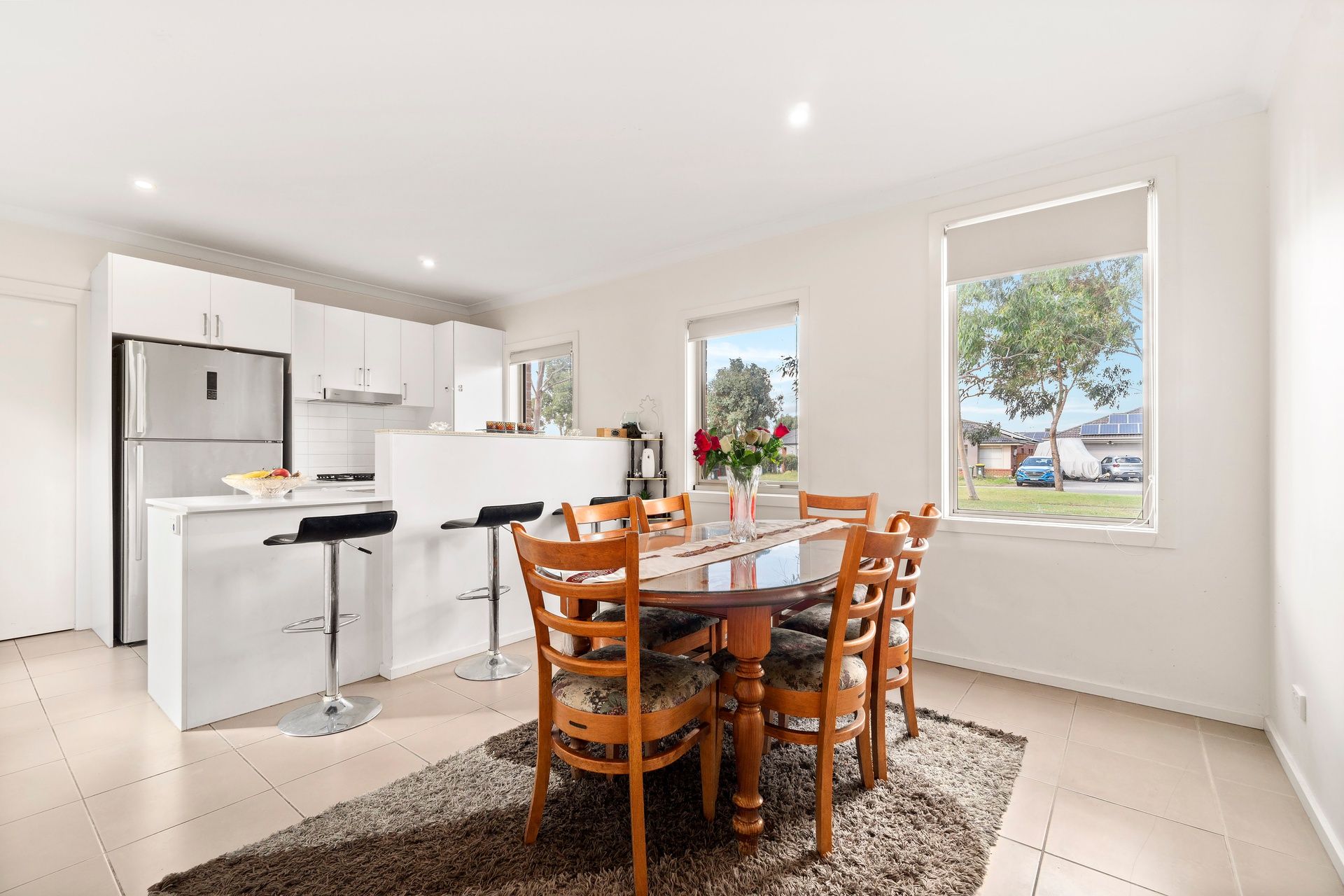 The ground floor comprises the main bedroom with a full ensuite while a generously proportioned light-filled lounge complements an equally spacious living-meals area. A stone-finished, stainless steel equipped kitchen is seamlessly integrated with a very convenient breakfast bench. Ready for meals on the go, it's an ideal spot to relax and chat while dinner is prepared.