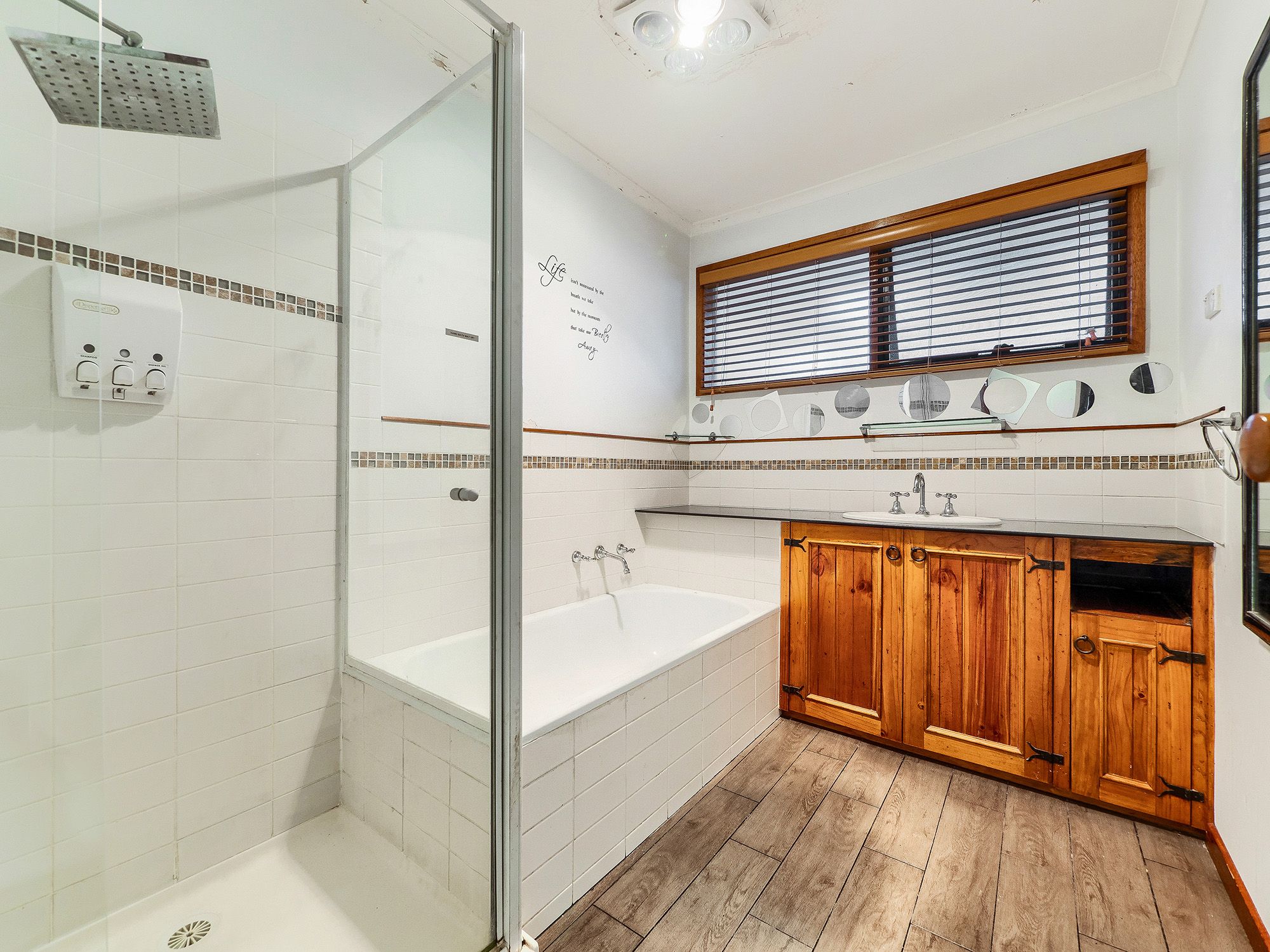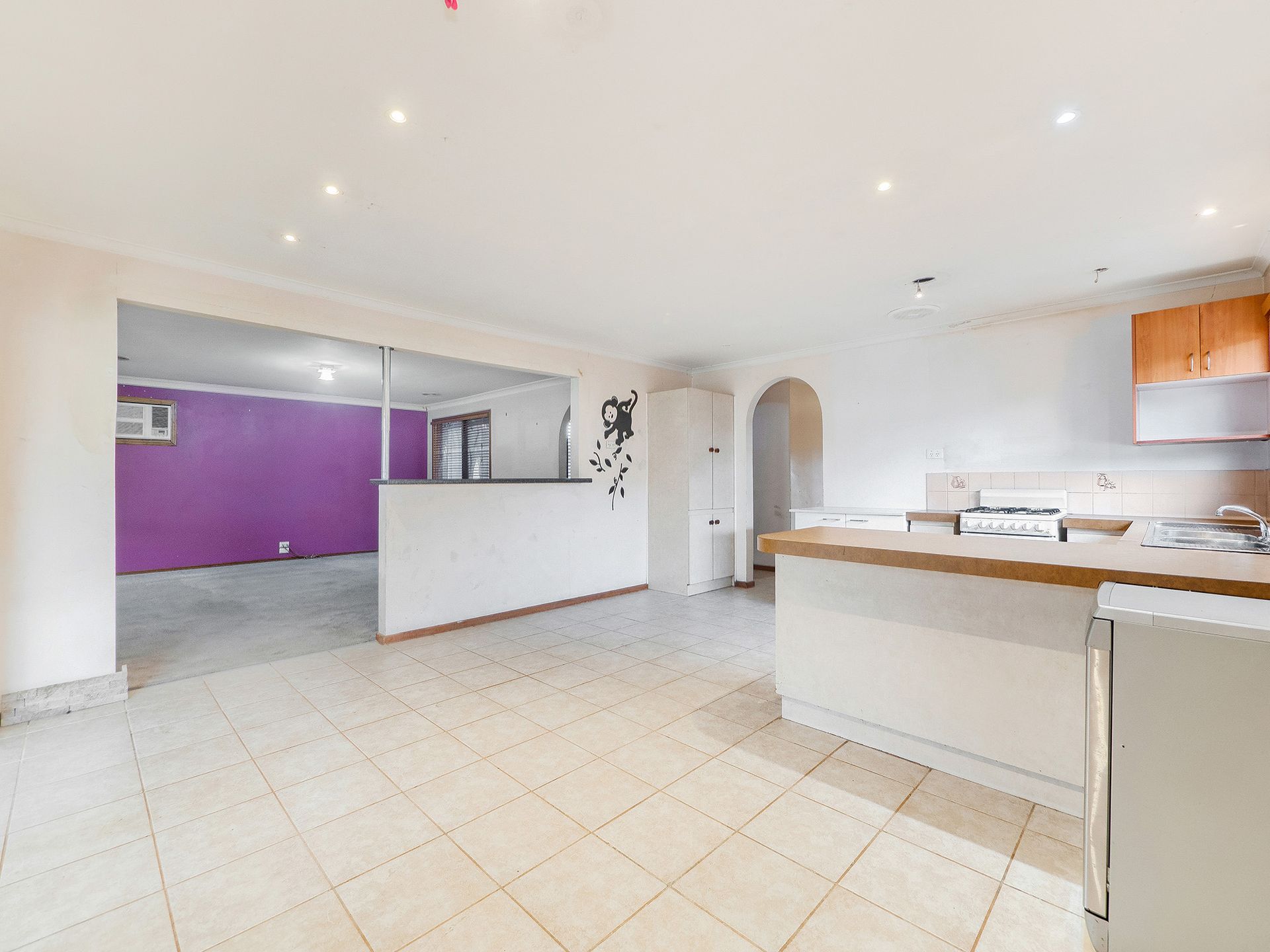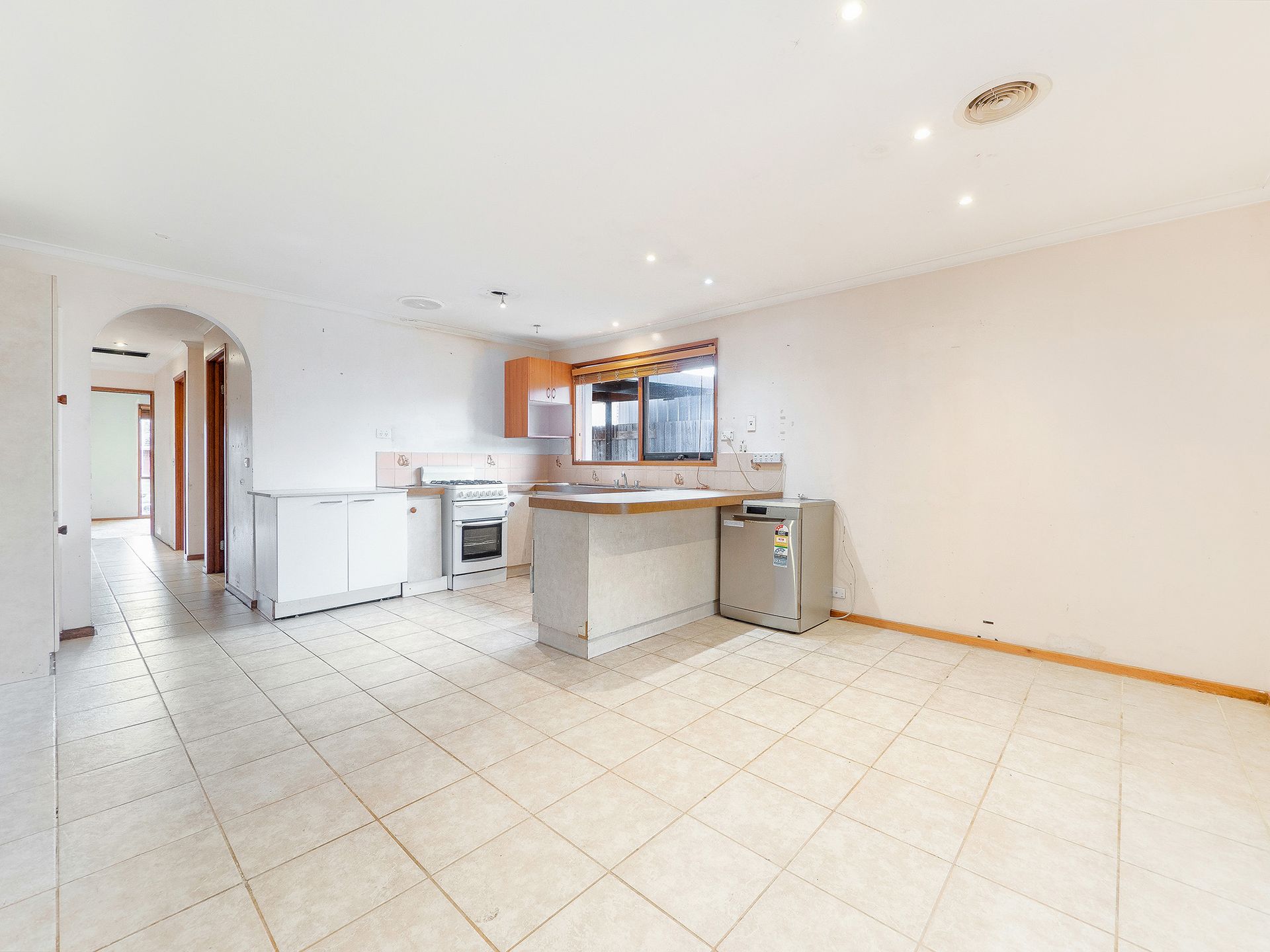 Beyond the entry and an on-trend arched walkway, the residence offers a generously sized 5-metre living area with timber venetian blinds, ducted heating and air conditioning.