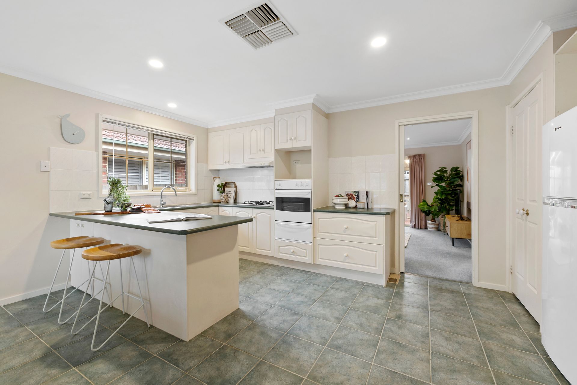- Modern kitchen complete with breakfast bar, tiled splashbacks & an abundance of storage