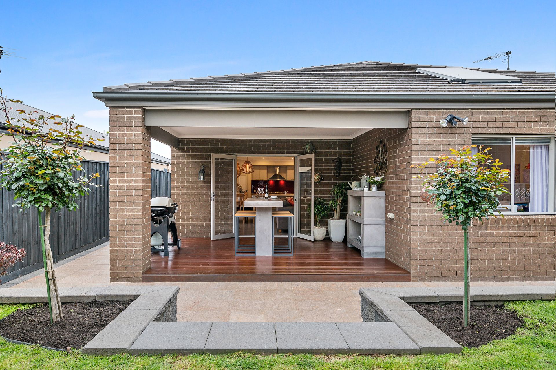 The media room takes family movie nights to the next level with integrated surround sound speakers and NBN fibre connectivity which also runs throughout the entire residence. Four robed bedrooms include the master with a walk-in robe and ensuite that incorporates a dual-sink vanity and heated towel rail. The oversized main bathroom also includes a heated towel rail as well as a bath, shower and separate WC.