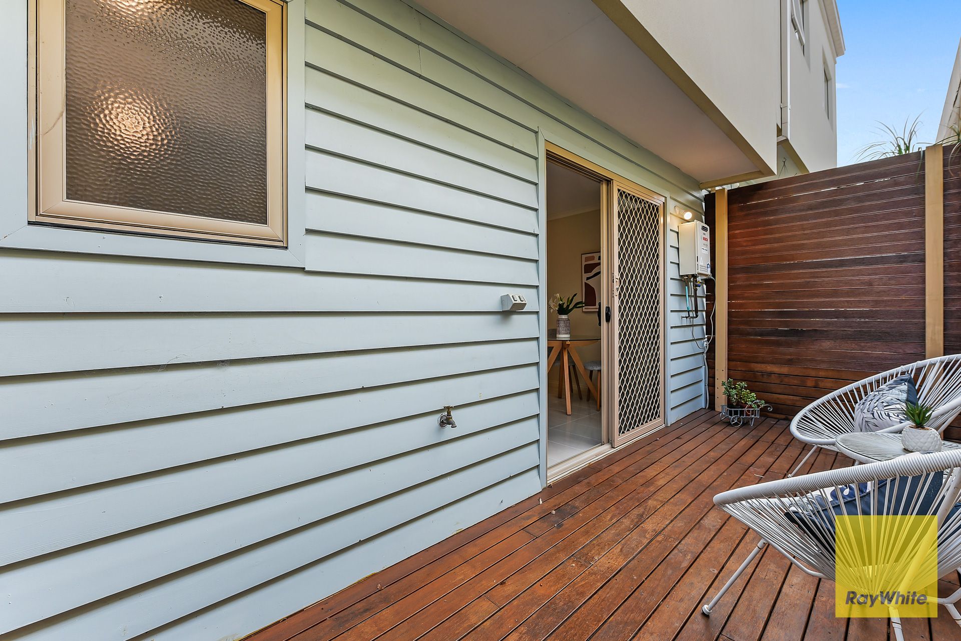 Upon entry the ground floor offers an open plan living space with plenty of natural light, a kitchen equipped with a tiled splashback, gas cooking, electric oven and an abundance of cupboard space. The Second Floor features two Generous sized Bedrooms both with BIR, a large bathroom and plenty of storage. Step outside from the living/kitchen area onto an outdoor deck, which is perfect for entertaining family and friends all year round.