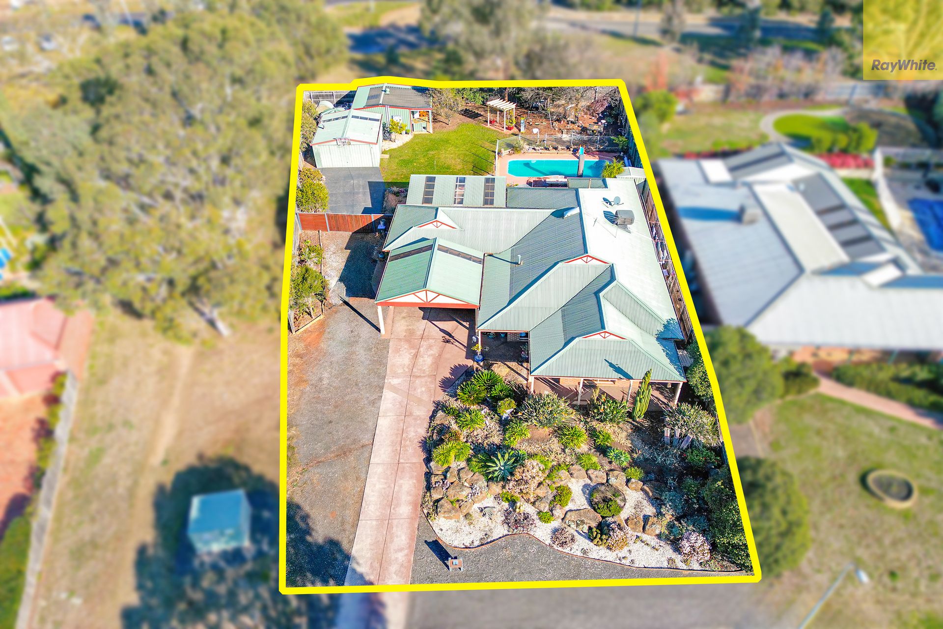 Outdoor living is just as impressive, featuring a large undercover patio perfect for year-round entertaining or relaxed alfresco meals, a spacious inground pool for summer enjoyment, and beautifully landscaped gardens offering both charm and privacy. A substantial rear shed/garage provides additional storage or a workshop, comfortably accommodating up to three vehicles. The property also includes a double carport, an extended driveway with drive-through access, and ample parking.