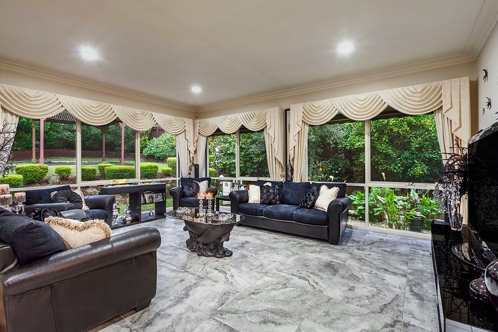 Headlining an exclusive elevated cul-de-sac with brilliant gated entry into glorious Anderson Park, this commanding family haven set on 859m2 (approx) size land perfectly combines design excellence, exceptional attention to detail and spectacular northerly views through to the Yarra Ranges. A home of style and substance, this elegant light-filled home is embraced by beautifully tailored gardens and offers faultless formal and informal living domains together with generous 5 bedroom accommodation (each with bathroom access), including downstairs guest bedroom ideal for in-law purposes. Immaculate from the outset with opulent entrance foyer framed by high ceilings and delicate chandelier, a generous flowing layout includes hostess kitchen with Blue Pearl granite benches, gloss cabinetry and Blanco appliances, including ducted exhaust and Wok burner, vast adjoining air-conditioned casual living areas overlooking private gardens with gas heated hot tub, covered alfresco entertaining deck, 4 upstairs double bedrooms with built-in-robes, Main bedroom with panoramic views, walk-in-robe and spa en suite, 4 bathrooms featuring granite top vanities, large laundry, double remote garage with secure internal entry. Further highlights include ducted heating, refrigerated cooling, ducted vacuum, zoned alarm, intercom, satellite dish, quality drapes and furnishings. This very private position is within wandering distance to The Pines Shopping Centre, bus and within easy range of schools and Eastern Freeway.
