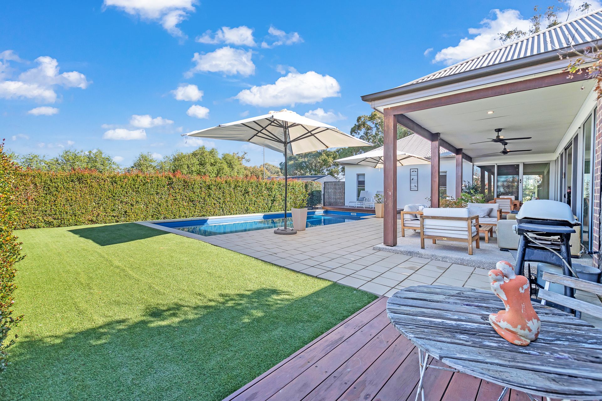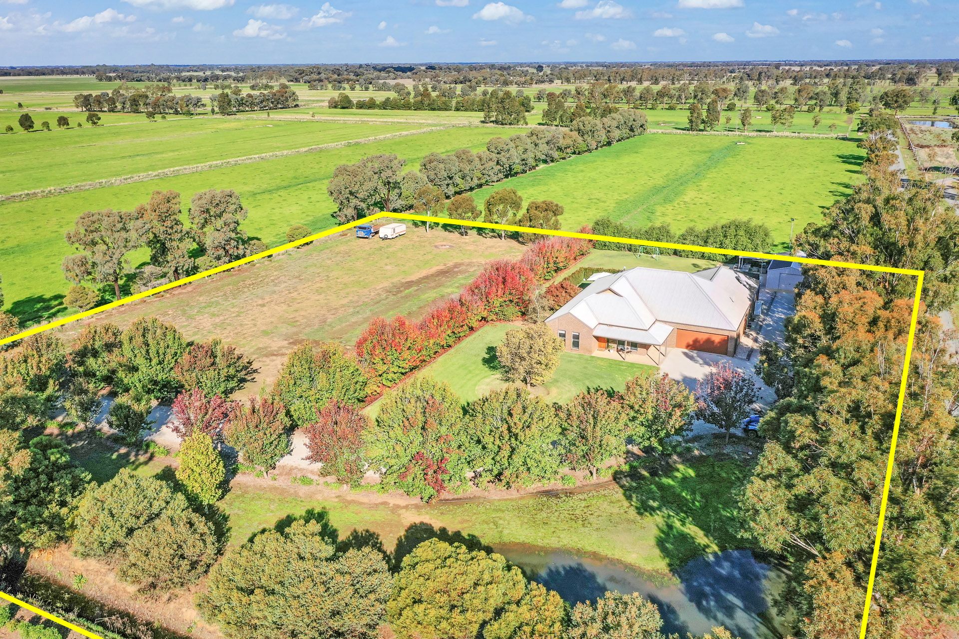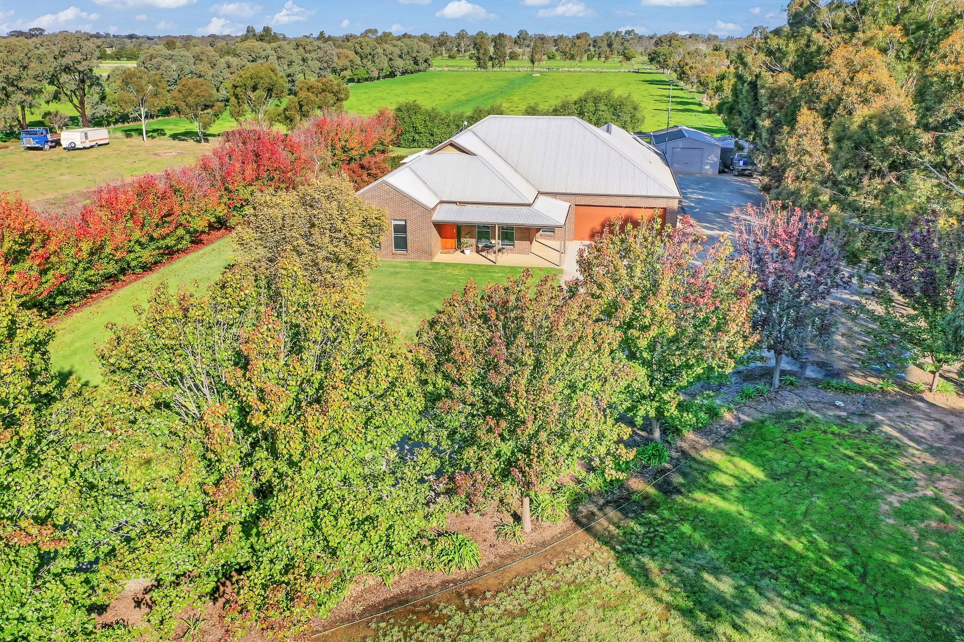 Prepare to be impressed as this home offers a first class family residence located in a picturesque setting on approximately 2 Acres on the outskirts of Echuca. This beautifully appointed modern custom built family home comprises of 4 excellent bedrooms. The master offers a walk in robe and a spacious en-suite. The home showcases large open plan light filled living zones, integrating with an excellent entertainers kitchen with a walk in pantry. The living area also connects to the undercover outdoor alfresco entertaining area with an inground solar heated pool and decked zone where you can enjoy endless summer days here. The gardens around the home are landscaped with mature trees, and open spaces enough to kick a football, play cricket or sit around the firepit area.
