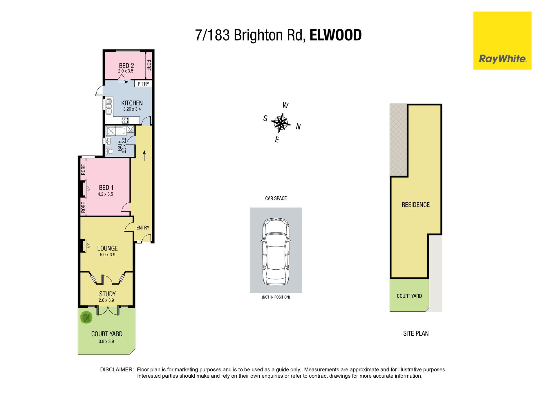 This immaculate designer home provides total comfort including light filled living area, bright study / sunroom with double doors leading to your own private leafy courtyard. Two bedrooms with ample BIR. A stunning marble bathroom with heated flooring and towel rails. The kitchen consists of high quality Bosch appliances, stone bench tops that lead out to a private external bbq nook, to ensure you enjoy the idyllic indoor/outdoor lifestyle.