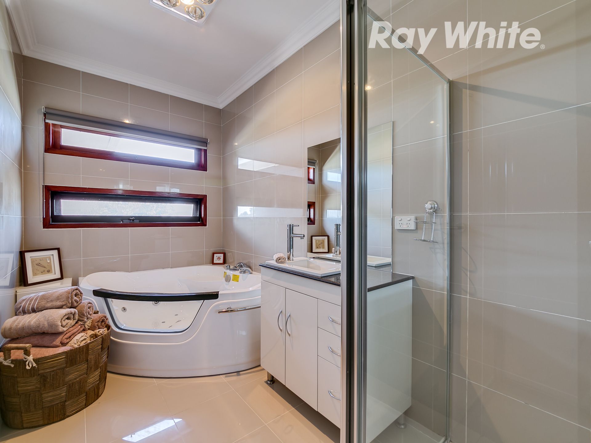 - 2 fully tiled bathrooms (spa to upstairs bathroom)
