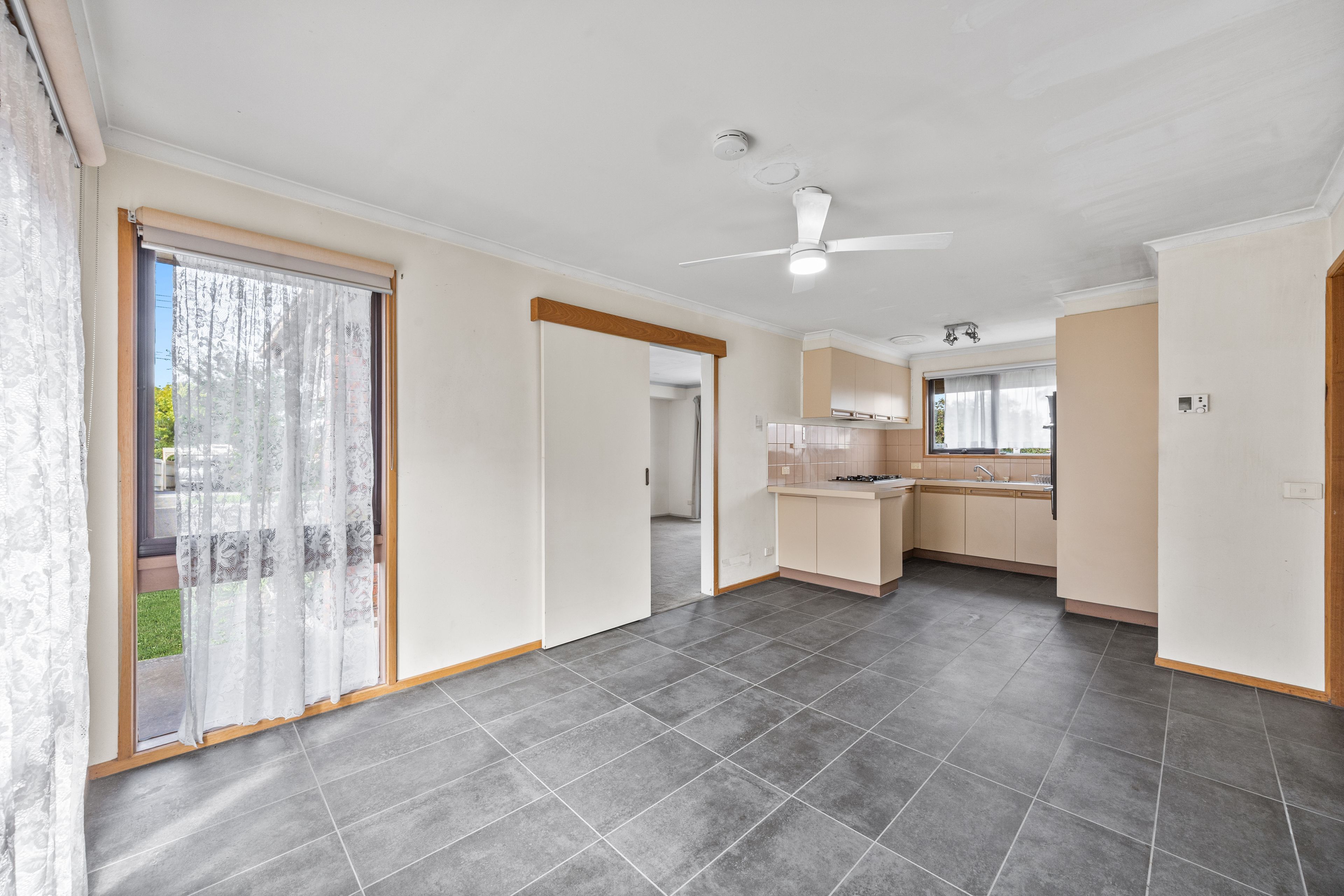 Stepping inside, the home reveals a simple and functional layout, featuring three bedrooms, a central bathroom, and separate living and dining zones. The kitchen sits at the heart of the home, connecting through to the meals area, while a generous living room at the front provides a solid foundation for future improvement.