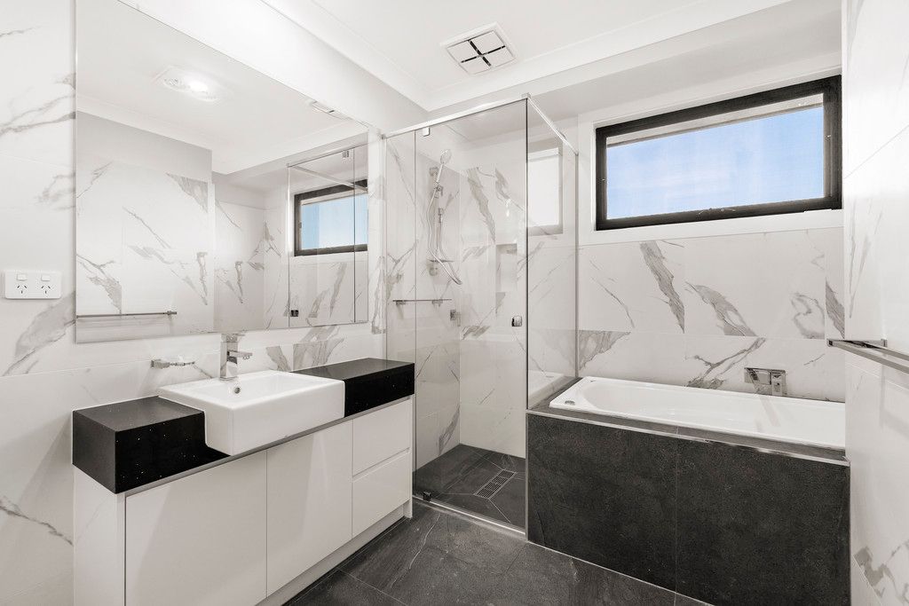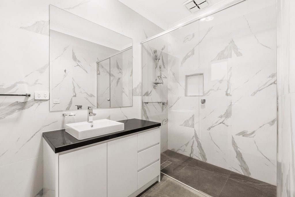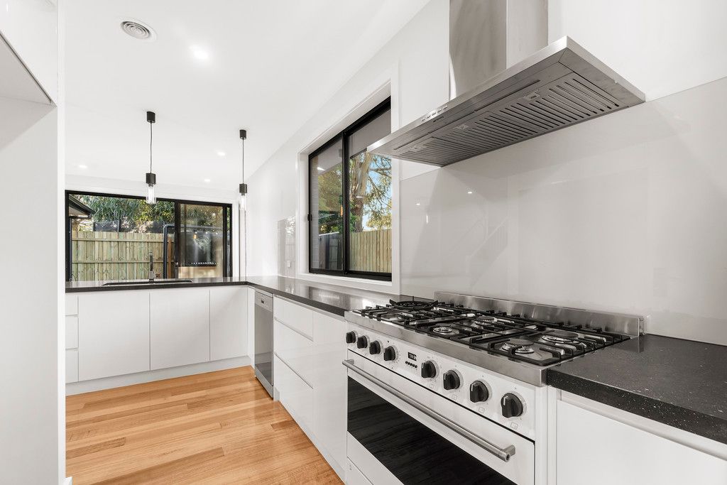 The ground floor of this home is an exquisite display of contemporary finishes. Polished Tasmanian oak hardwood floors and abundant natural light brighten the adaptable lounge, family room, and dining area. The quality 2pac kitchen is timeless with a monochrome black and white palette, Smeg appliances, and glass splashback. With oversize stacking doors from both the living area and ground floor main bedroom to the private courtyard, this home offers a connection with the garden to enjoy for years to come.
