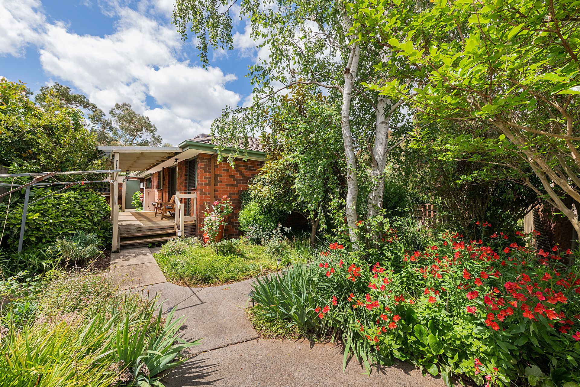 • A lush private courtyard with covered deck